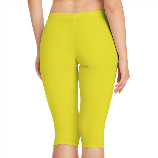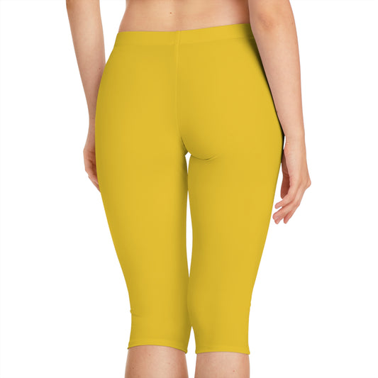 Yellow Color Capri Leggings, Yellow Capri Leggings
