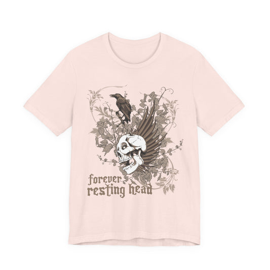 Forever Resting Head Tee, Edgy Graphic Shirt, Music T-Shirt, Gothic Tees, Skull Shirt, Art Design Tee, Skull Graphic Top