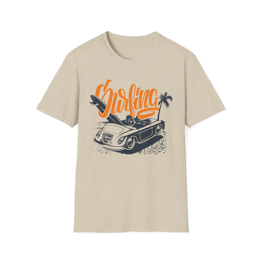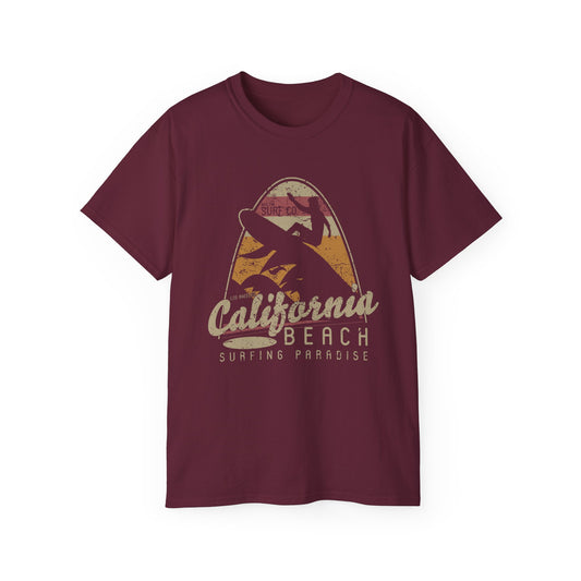 California Beach Surfing Paradise T-Shirt , Vintage Surfer Tee, Gildan 2000 Art Design T-Shirt, 100 Cotton T-Shirt with Art Design -AD-1