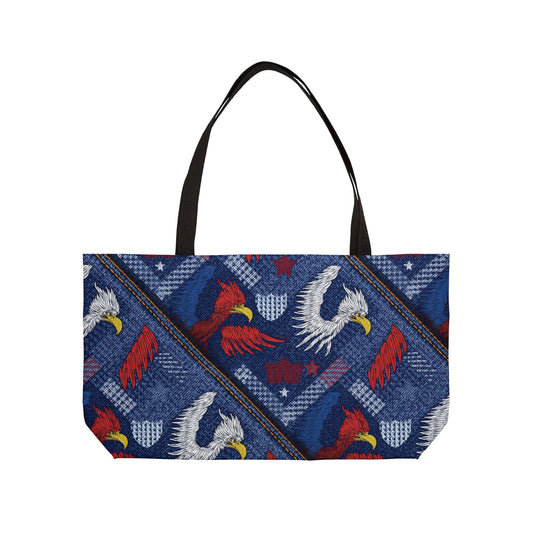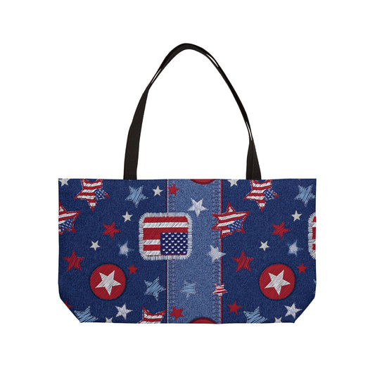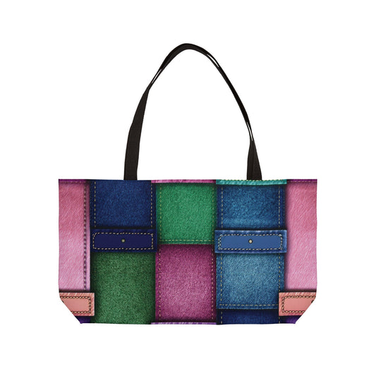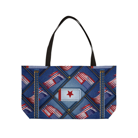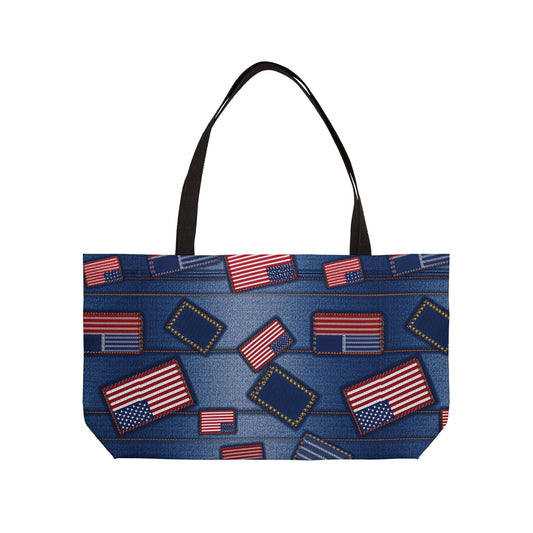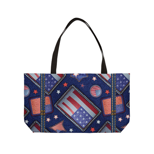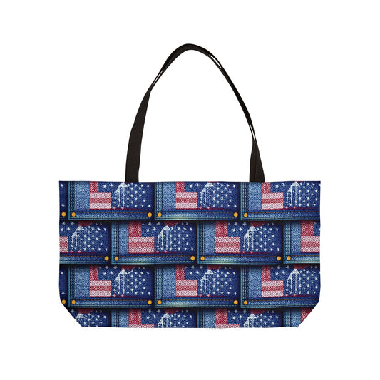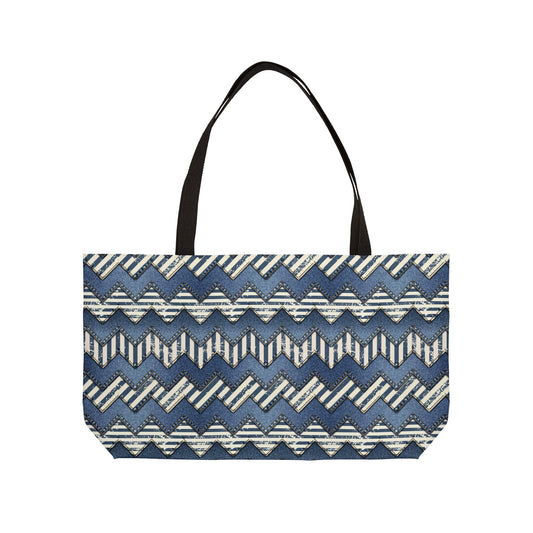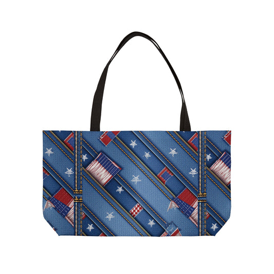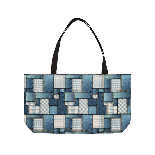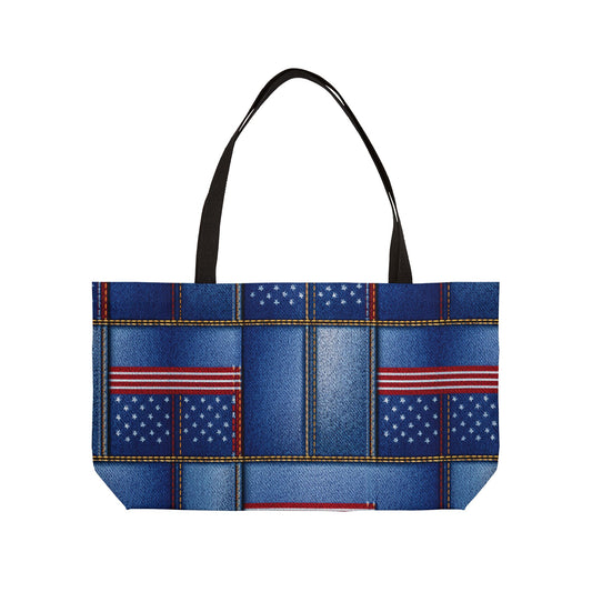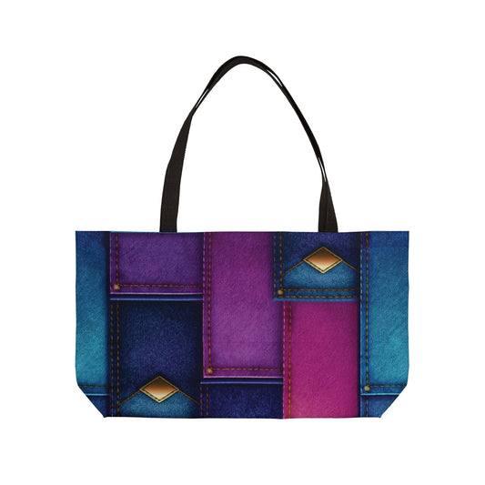 Denim Print Weekender Bag High-Quality 100% Spun Polyester 24x13 Canvas Bag 12