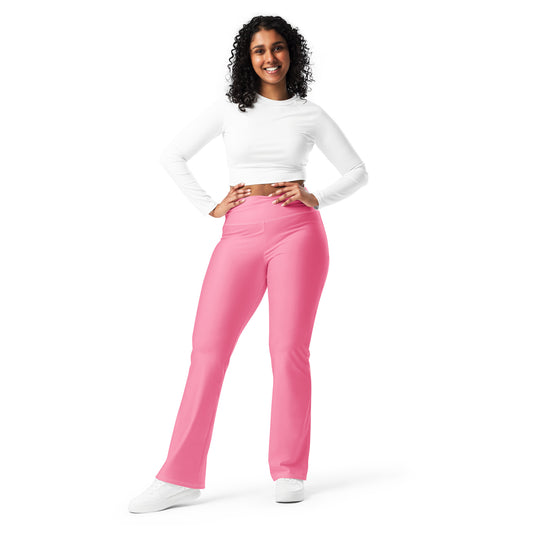 Rose Pink Flare Leggings, Pink Flare Leggings