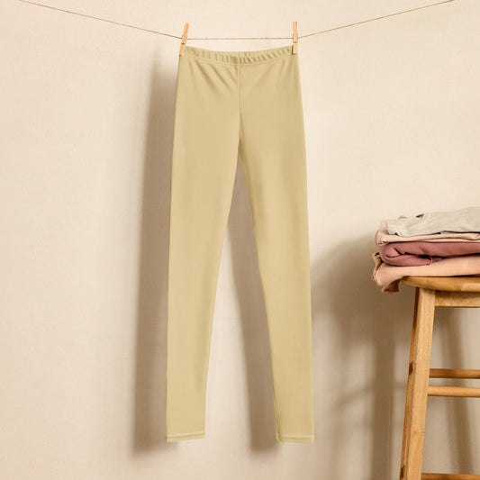 Old Gold Kids Leggings, Beige Kids Leggings