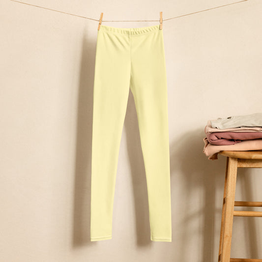 Apricot White Kids Leggings, Light Yellow Kids Leggings
