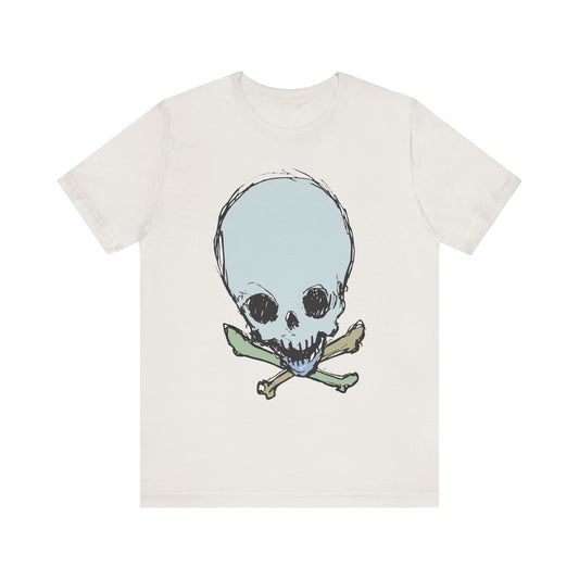 Lt Blue Skull Graphic Design Tee, Skull Shirt, Vintage Tees, Art Design T-Shirt, Vintage Graphic Tee, Art Shirts with Skulls