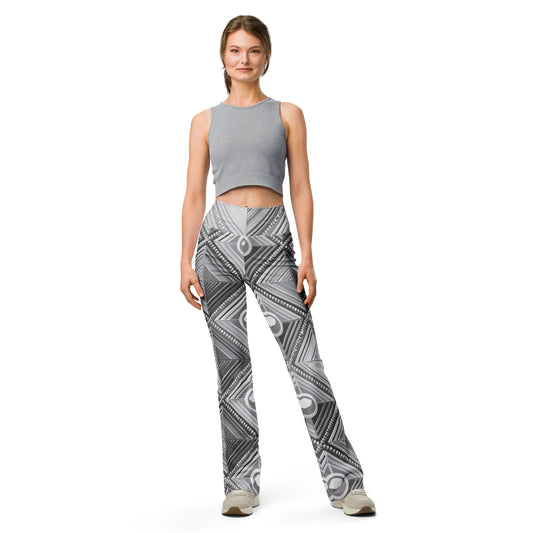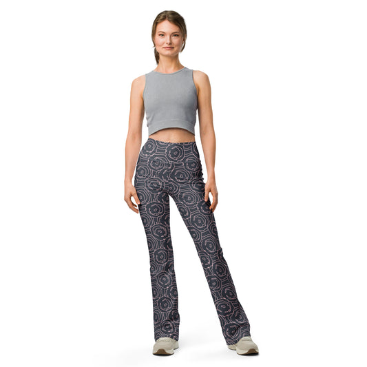 Radio City Flare Leggings, Abstract Print Flare Leggings, Dark Color Flare Leggings