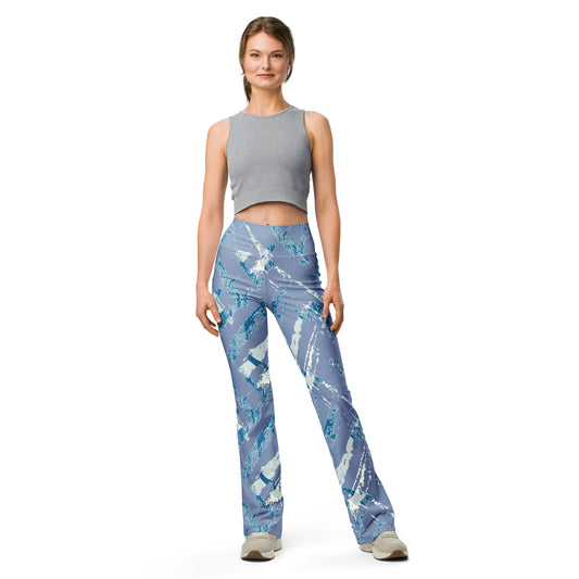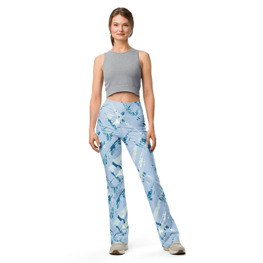 Sky Grid Flare Leggings, Abstract Print Flare leggings, Lt Blue Flare leggings