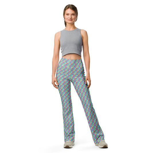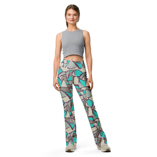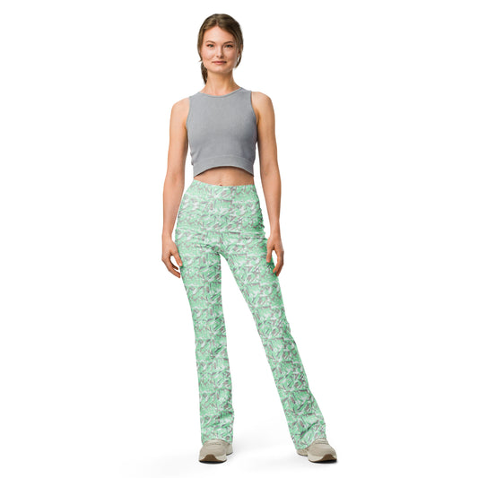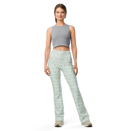 Mint Grid Flare Leggings, Abstract Print Flare Leggings, Mint Flare Leggings