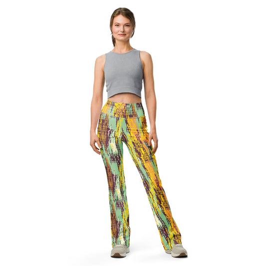 New Orleans Street Flare Leggings, Abstract Print Flare Leggings, Multi Color Flare Leggings
