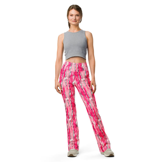 Pink Spots Flare leggings, Abstract Print Flare leggings, Pink Flare leggings
