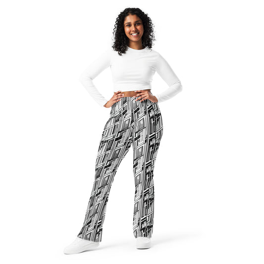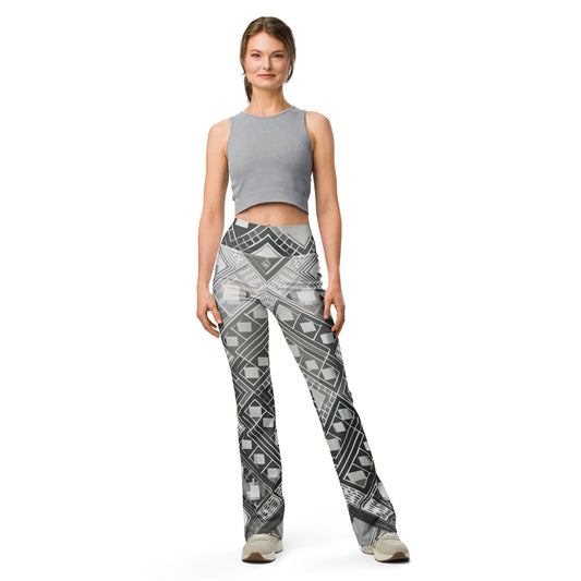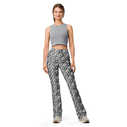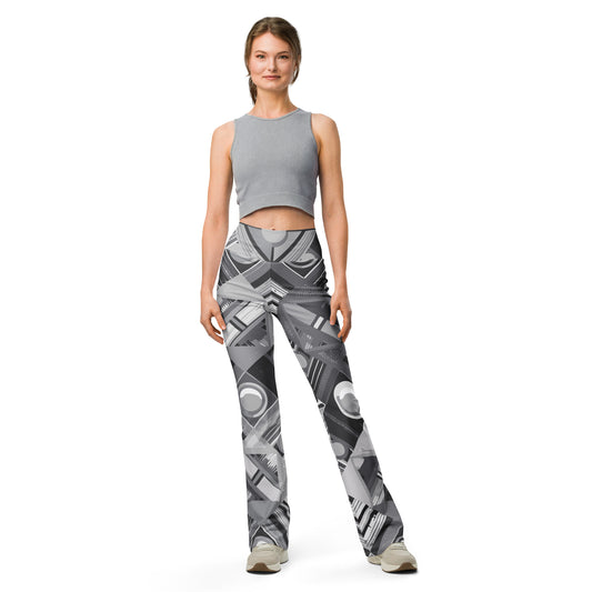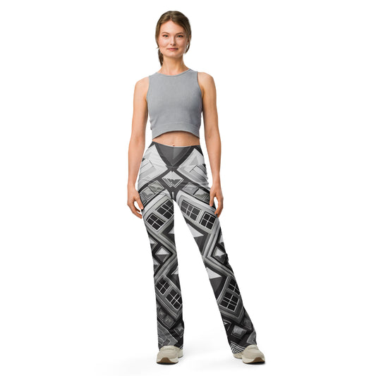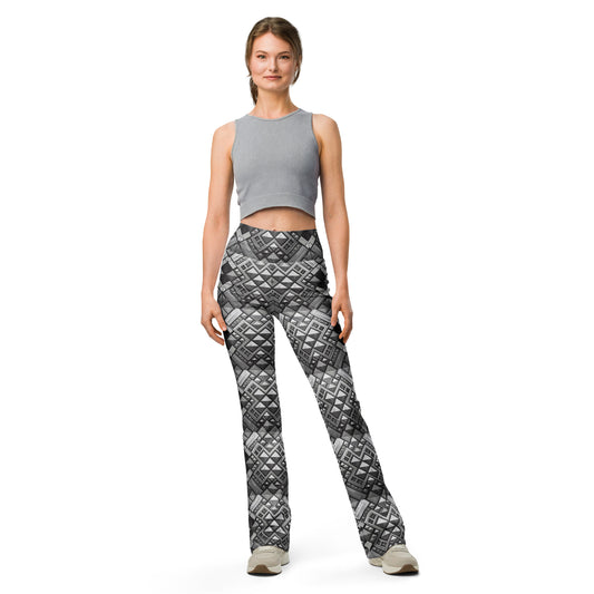 Midtown Grid Flare Leggings, Abstract Print Flare Leggings, Dark Flare Leggings