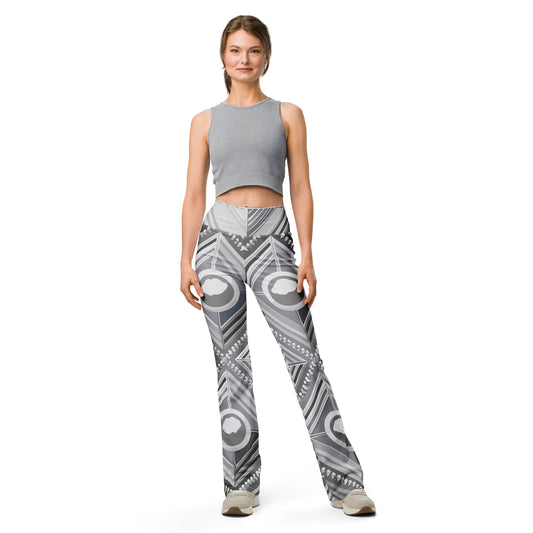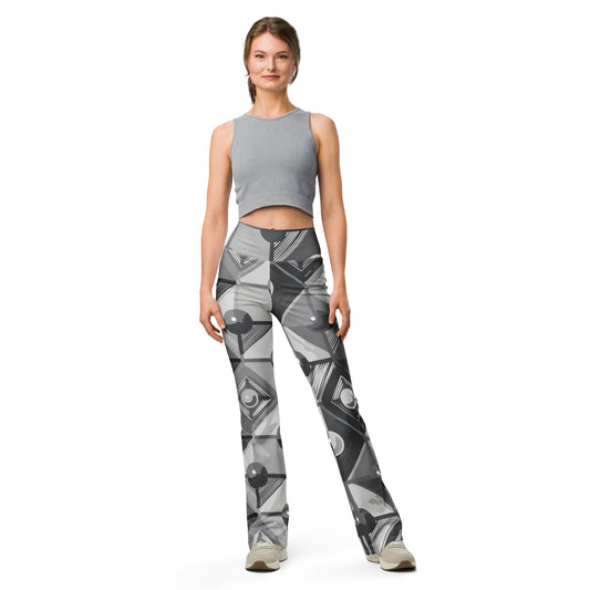 Geometric Flare Leggings, Abstract Print Flare Leggings, Dark Color Flare Leggings 1