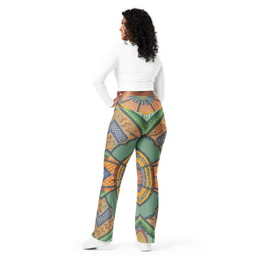 Africa Ornament Flare Leggings, Flare Leggings with Ornament