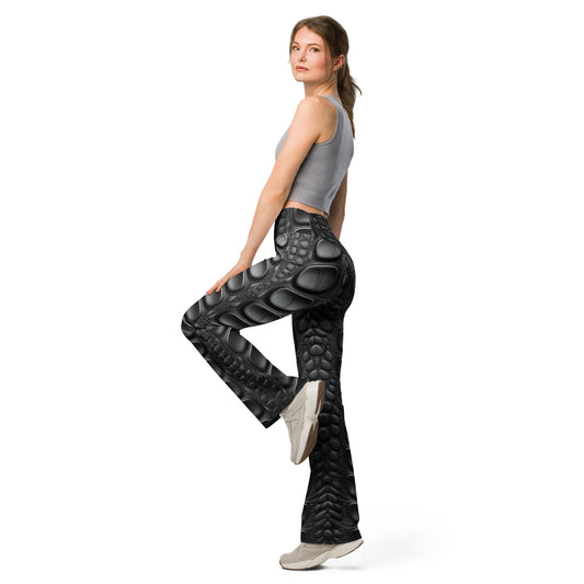 Animal Print Flare Leggings, Flare Leggings with Animal Print, Black Flare Leggings 7
