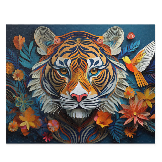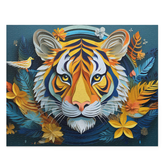 3D Tiger Face Puzzle 500-Piece | Floral Tiger Puzzle 500-Piece Ages 9+