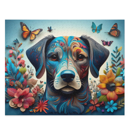Cute Blue Dog Face Puzzle 500-Piece | Floral Dog Puzzle 500-Piece Ages 9+