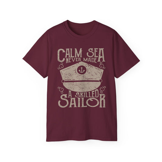 Calm Sea Never Made a Skilled Sailor T-Shirt , Vintage Sailor Tee, Gildan 2000 Art Design T-Shirt, 100 Cotton T-Shirt with Art Design -AD-3