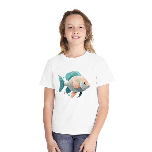 Camiseta juvenil de peso medio: camiseta con gráfico de peces de colores para niños (6 a 15 años)