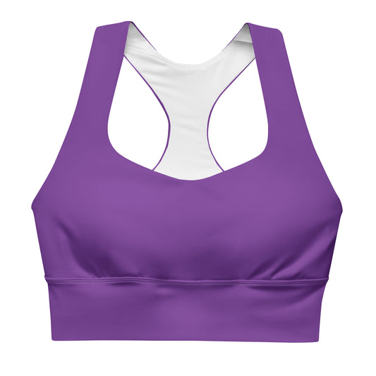Magenta Solid Color Longline Sports Bra, Magenta Pink Sports Bra with Lining, Removable padding