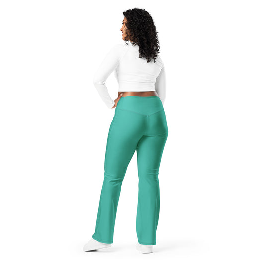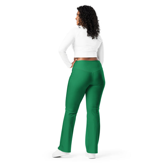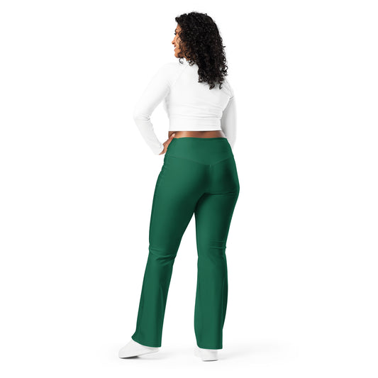 Dark Sea Green Flare Leggings, Green Flare Leggings