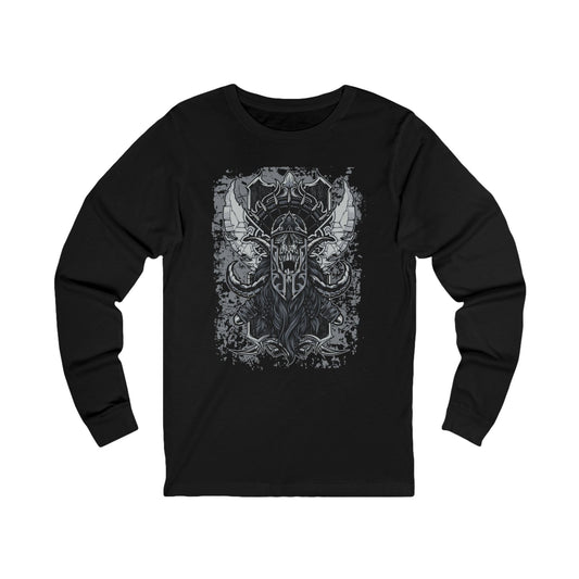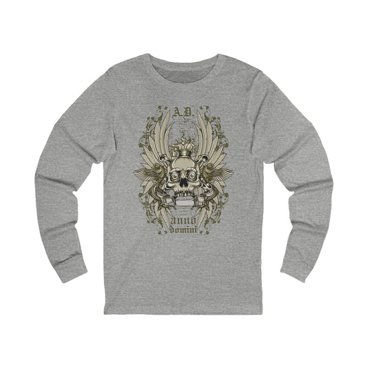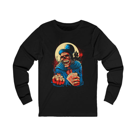 Creepy3 Unisex Skull Long Sleeve Tee, Skull Jersey Shirt, Skeleton T-Shirts with Long Sleeves, Skeleton Art Design Tees