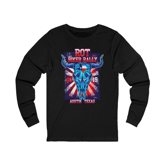 Biker Rally Unisex Bull Long Sleeve Tee, Bull Jersey Shirt, Biker Rally T-Shirts, Rodeo Art Design Tees Austin Texas T-Shirts