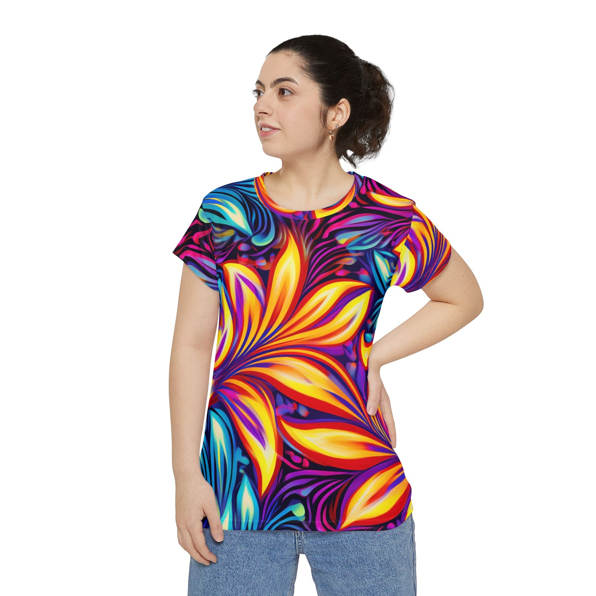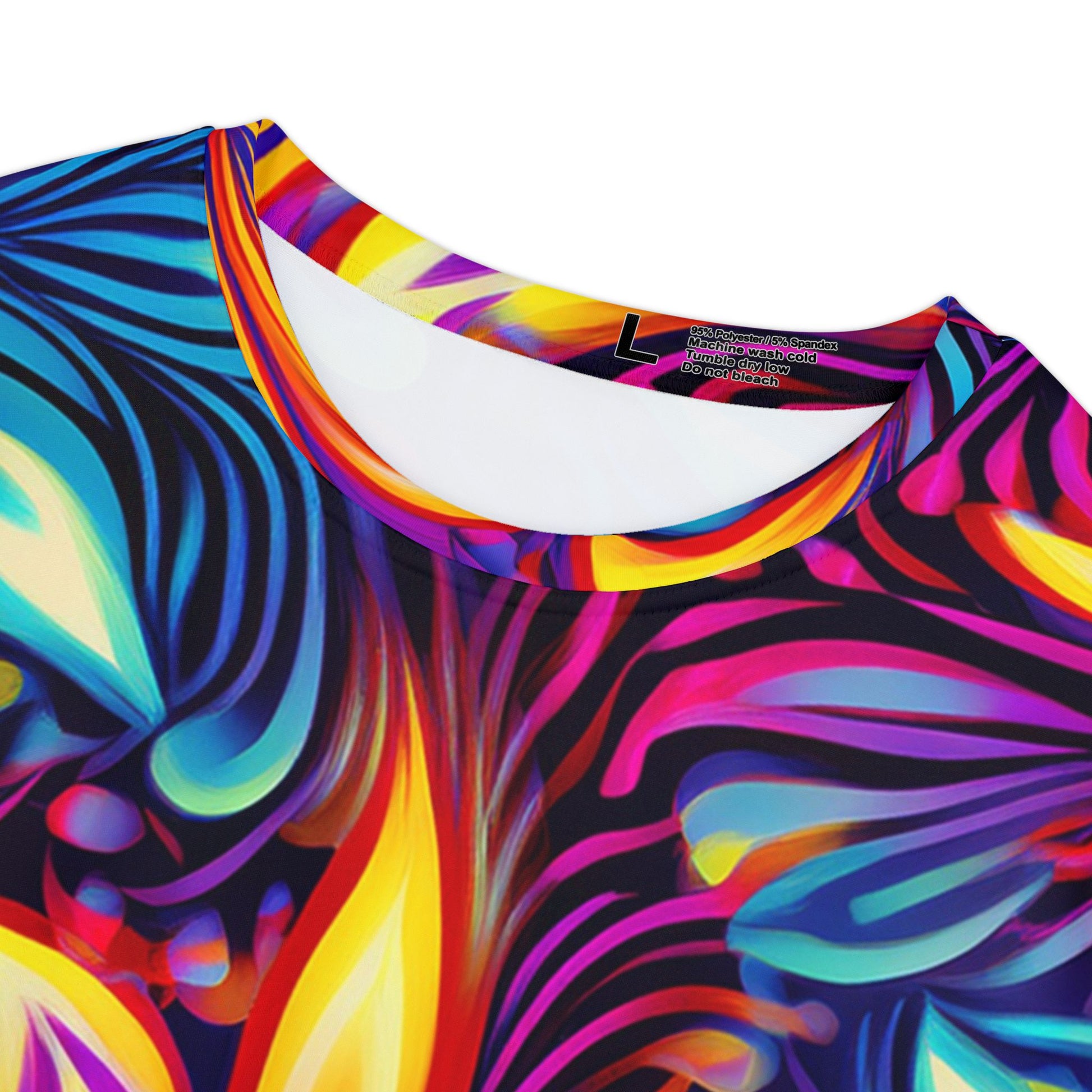 Floral Print Shirt – Made from moisture-wicking performance polyester, this light fabric ensures breathability and comfort. Designed for active lifestyles, its stretchy, durable material provides both style and performance. Featuring a unique all-over print, this nature-inspired jersey offers a bold, timeless look. This Poly Tee combines fashion and function, making it the perfect choice for any adventure or workout.