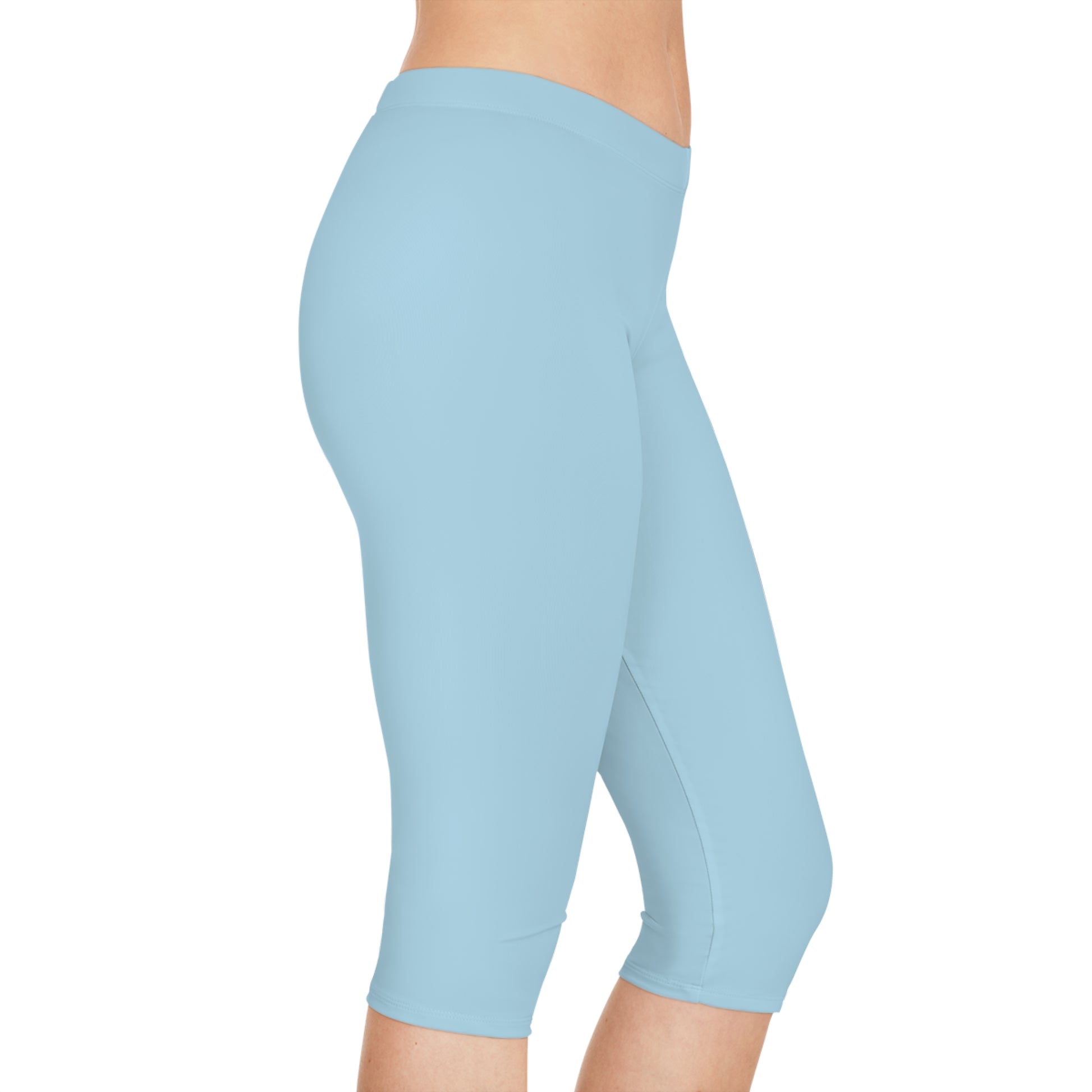 Blue Color Capri Leggings, Blue Capri Leggings - From PPU.BEST. Free shipping! Material: 88% polyester, 12% elastane – a highly stretchy fabric. The elastane provides exceptional flexibility and softness for maximum comfort. Medium-weight fabric (6.5 oz/yd² or 220 g/m²). Designed with a mid-waist and compression fit, these leggings offer a sleek and supportive feel, perfect for everyday wear in any setting.