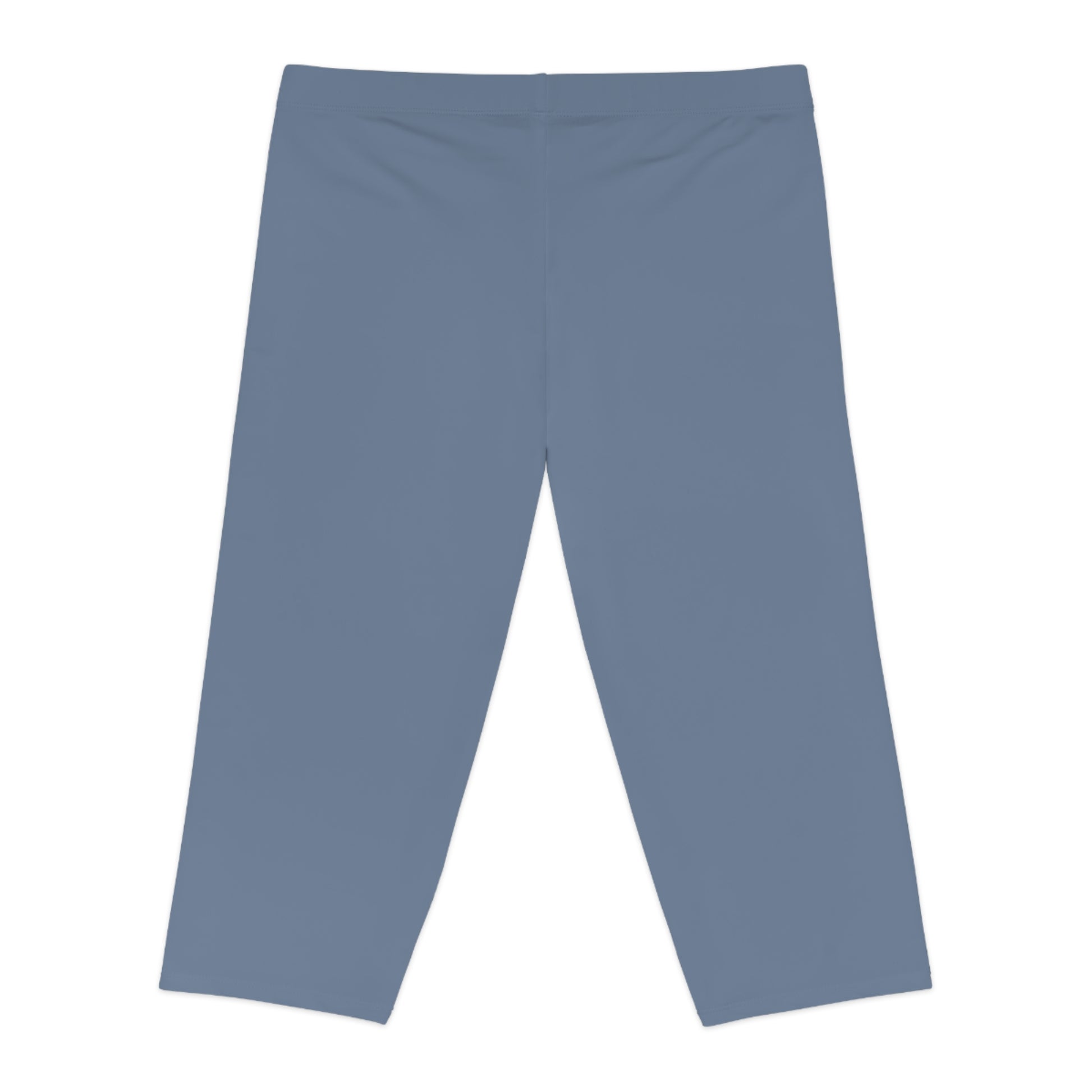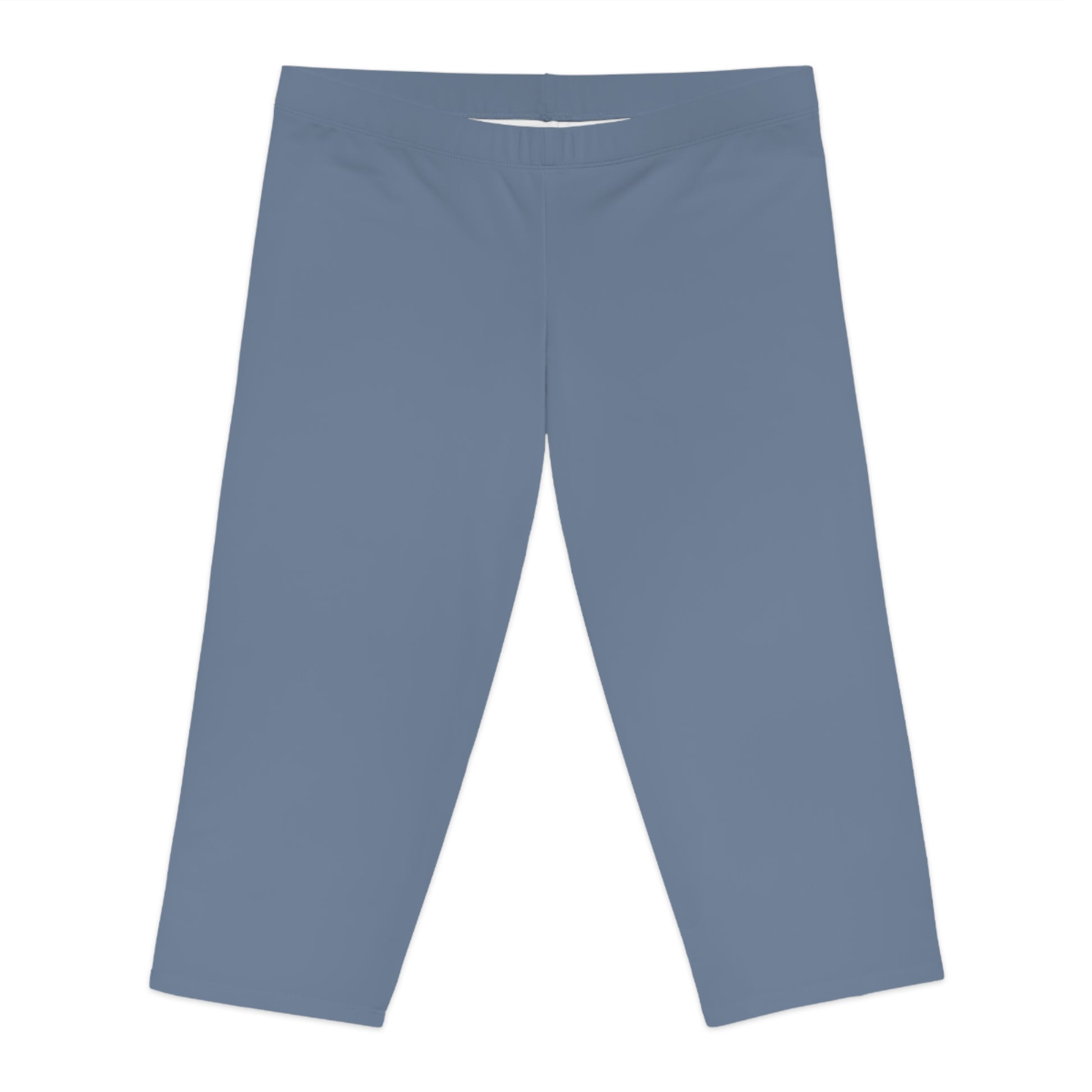 Blue Color Capri Leggings, Blue Capri Leggings - From PPU.BEST. Free shipping! Material: 88% polyester, 12% elastane – a highly stretchy fabric. The elastane provides exceptional flexibility and softness for maximum comfort. Medium-weight fabric (6.5 oz/yd² or 220 g/m²). Designed with a mid-waist and compression fit, these leggings offer a sleek and supportive feel, perfect for everyday wear in any setting.