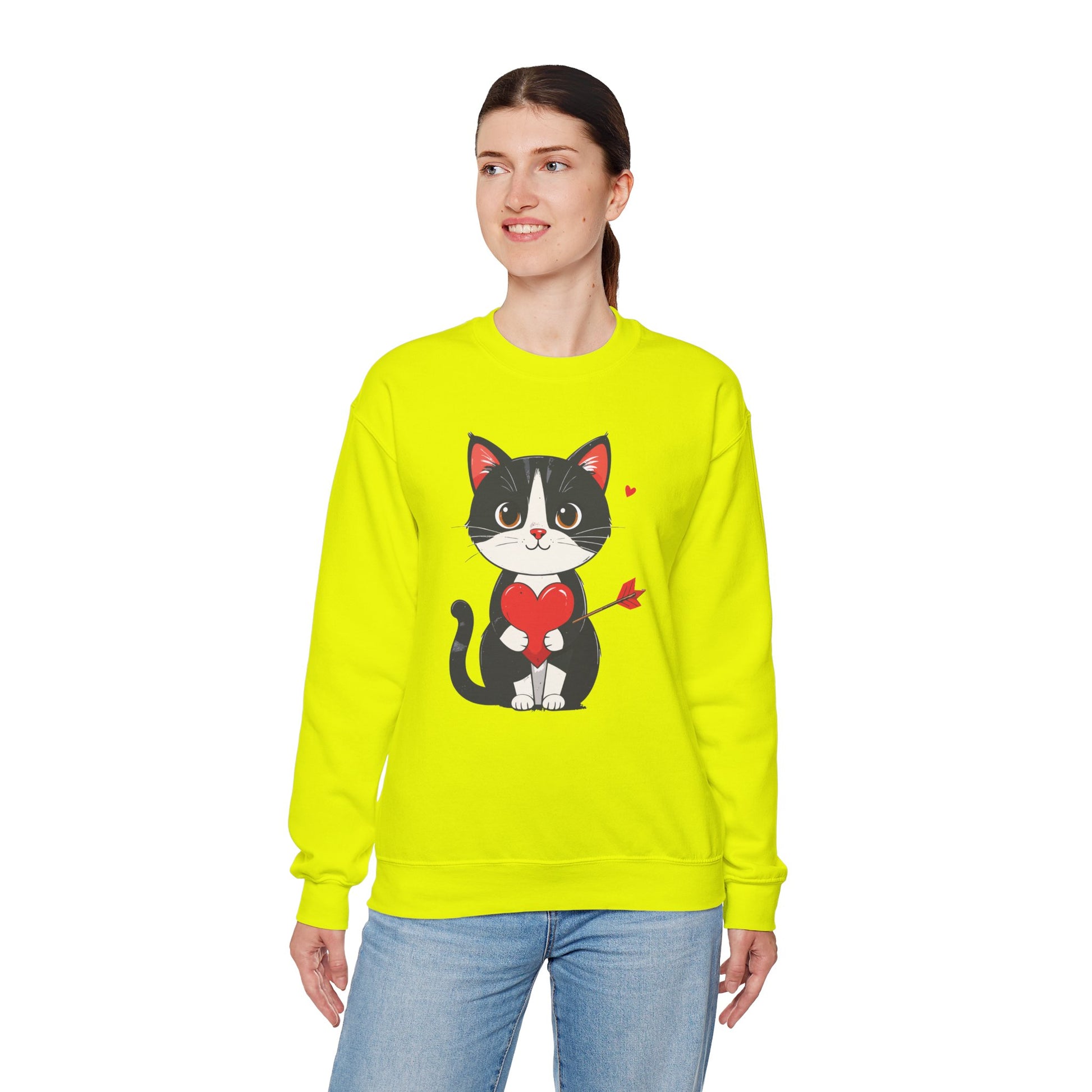 Cat Heart Sweatshirt, Heart Sweatshirt, Cat Sweatshirt, Valentine's Day Sweatshirt, 50/50 Cotton-Poly Animal Sweatshirt