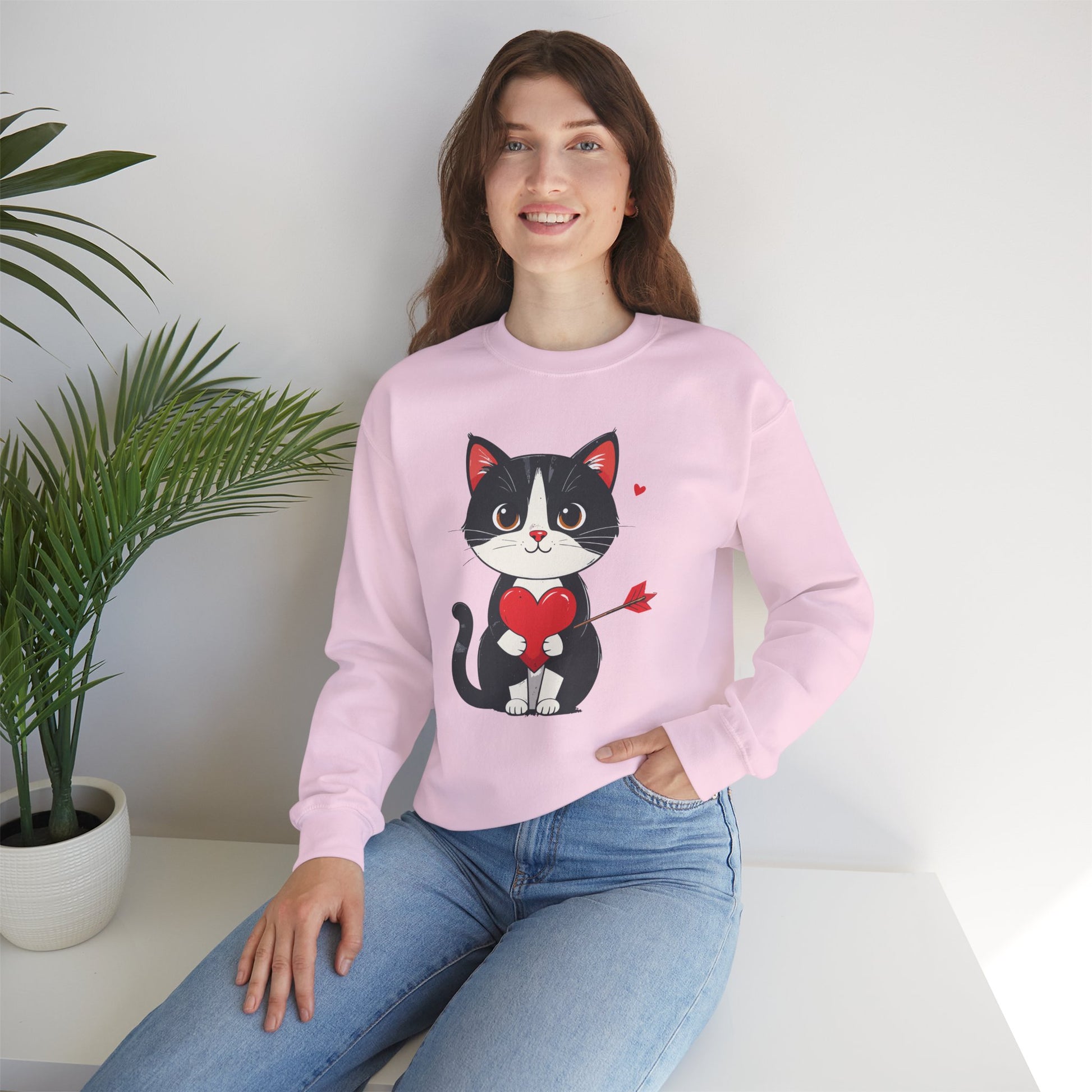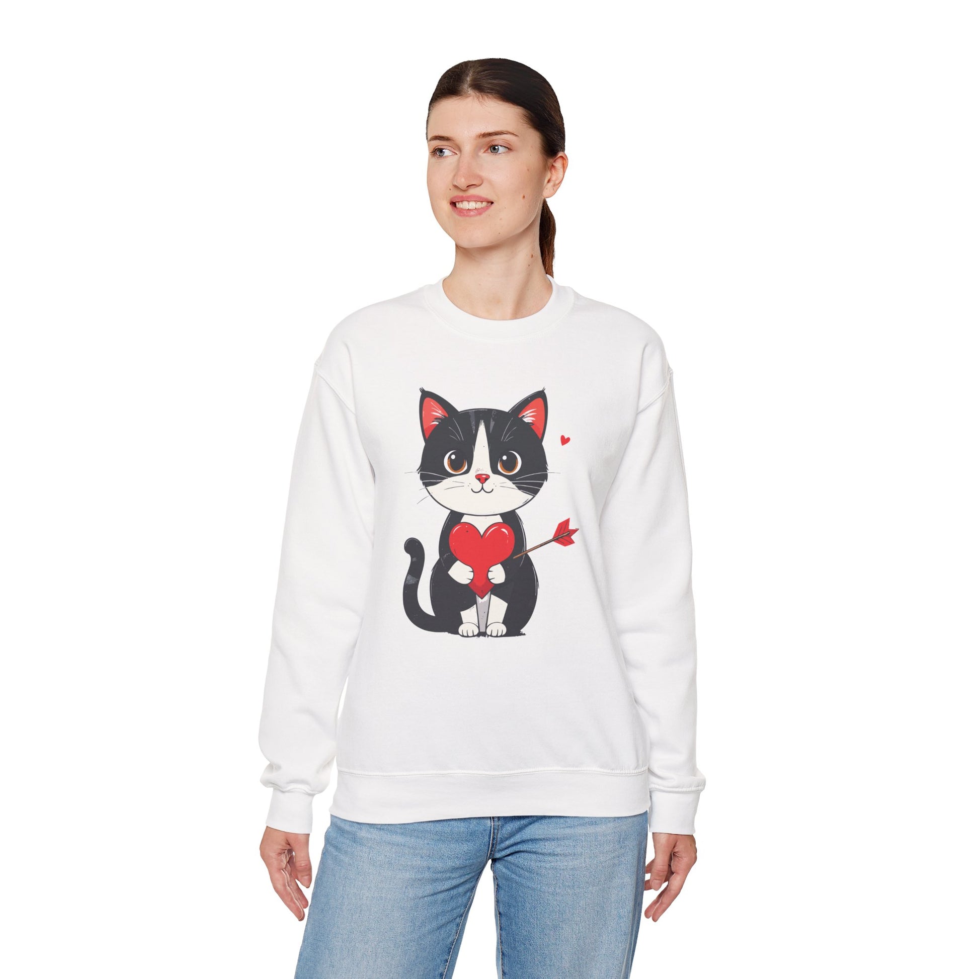 Cat Heart Sweatshirt, Heart Sweatshirt, Cat Sweatshirt, Valentine's Day Sweatshirt, 50/50 Cotton-Poly Animal Sweatshirt 103