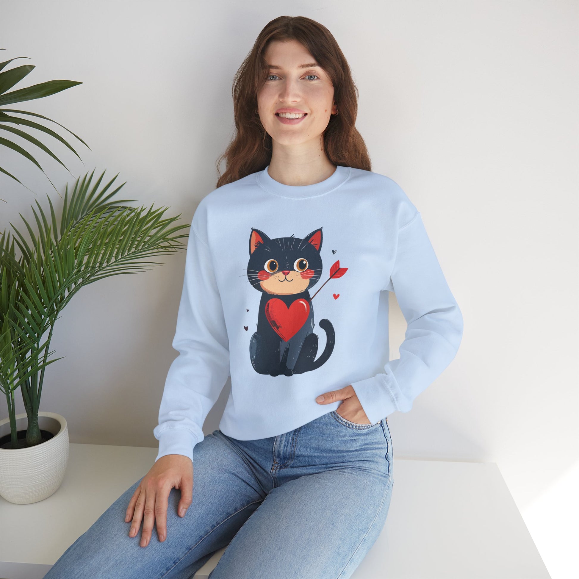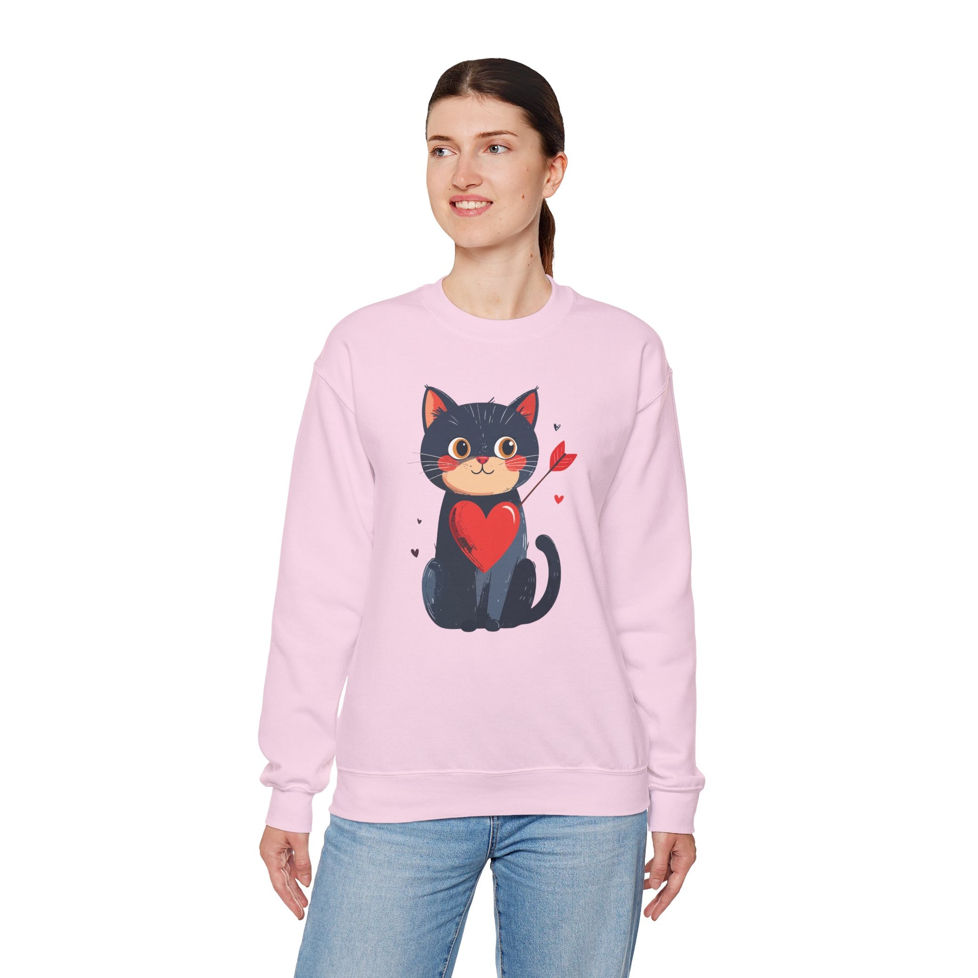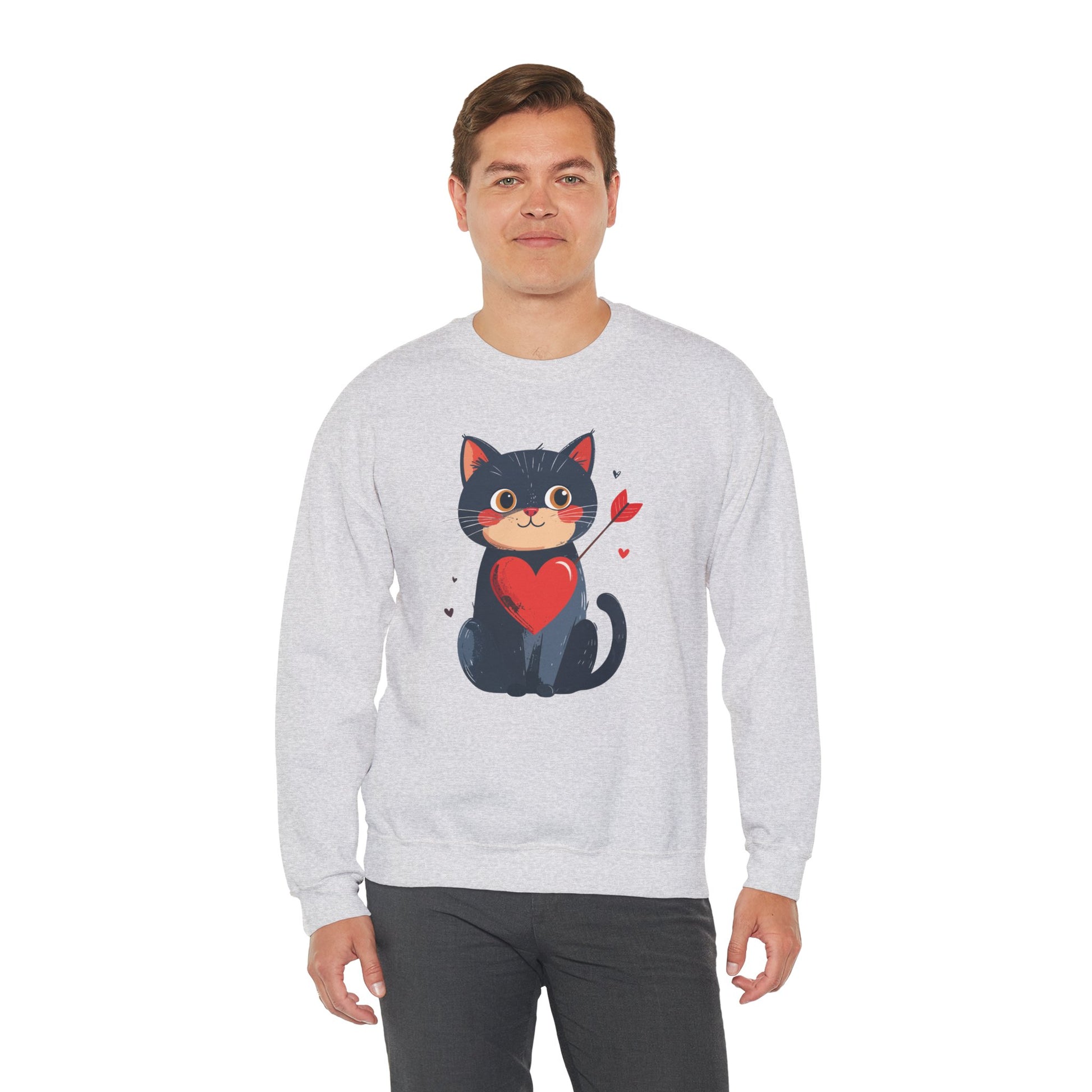Cat Heart Sweatshirt, Heart Sweatshirt, Cat Sweatshirt, Valentine's Day Sweatshirt, 50/50 Cotton-Poly Animal Sweatshirt 108