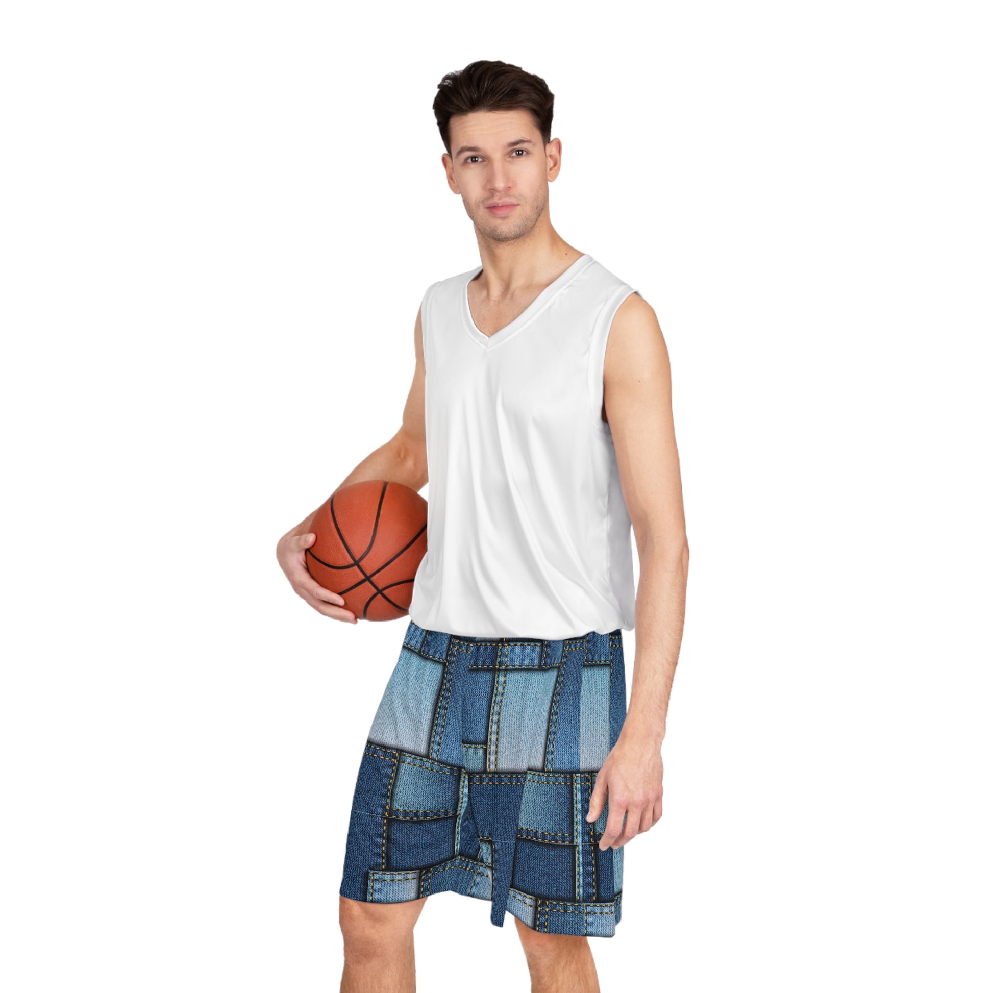 Denim Print Basketball Shorts, Basketball Shorts with Denim Print 1