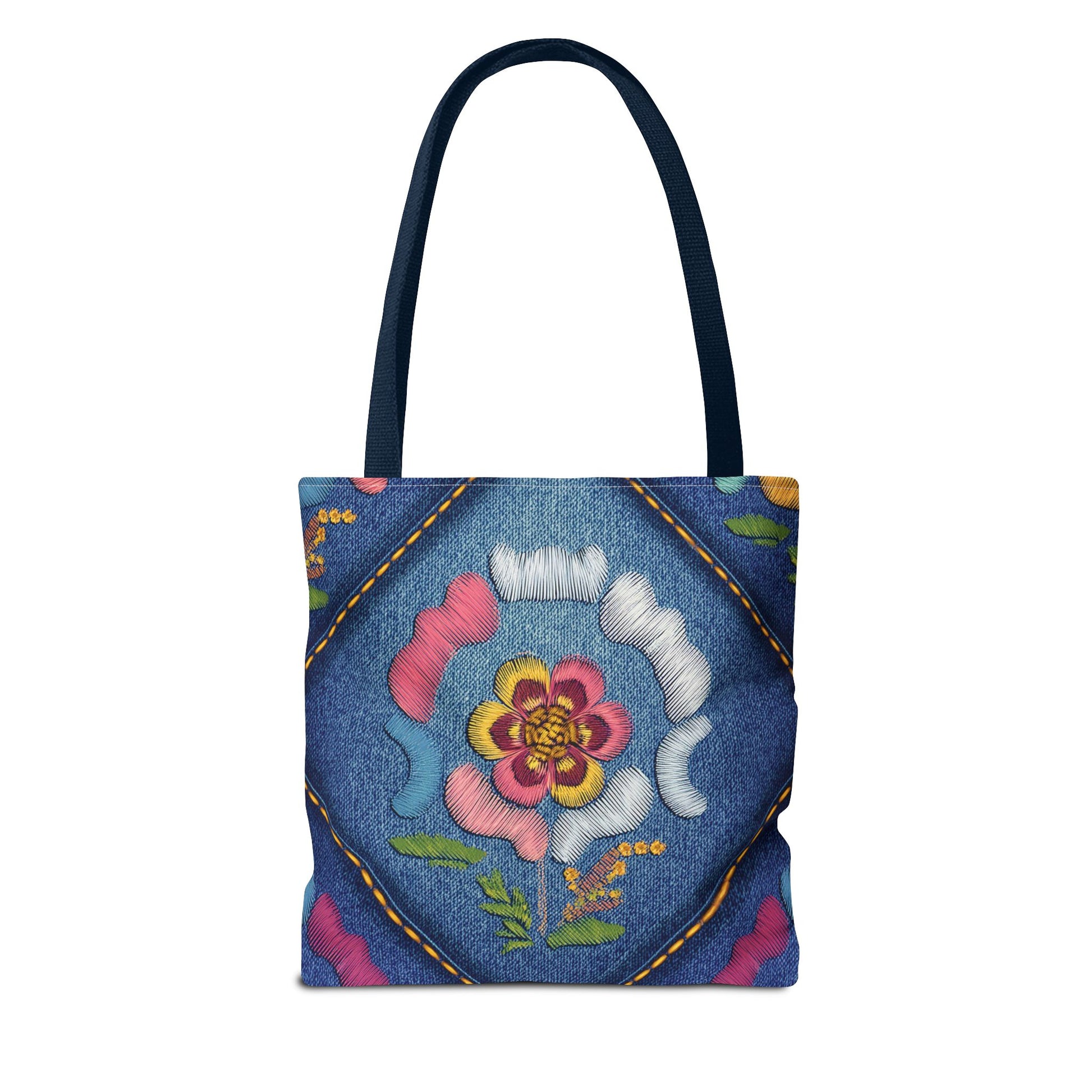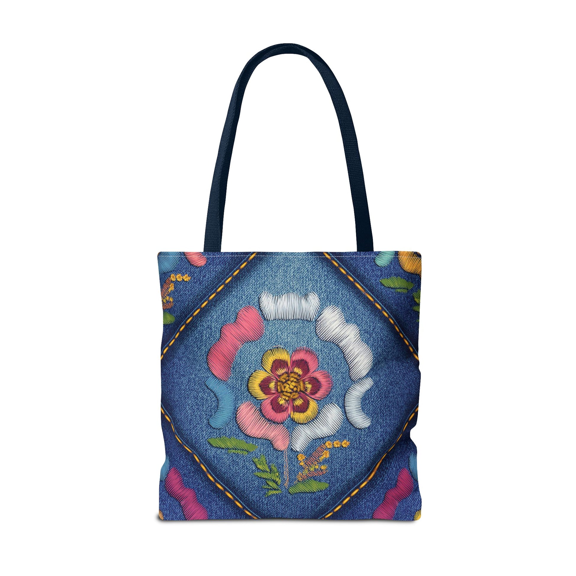 Denim Print Canvas Tote Bag – Elegant Poly Shoulder Bag - Enhance everyday functionality with timeless style in our Denim Print Canvas Tote Bag. Designed for versatility, this custom-printed tote is available in three convenient sizes and offers multiple handle color options to perfectly complement your look. Crafted from premium spun polyester, it delivers exceptional durability with double-stitched seams, sturdy cotton webbing straps, and a non-woven laminate interior.