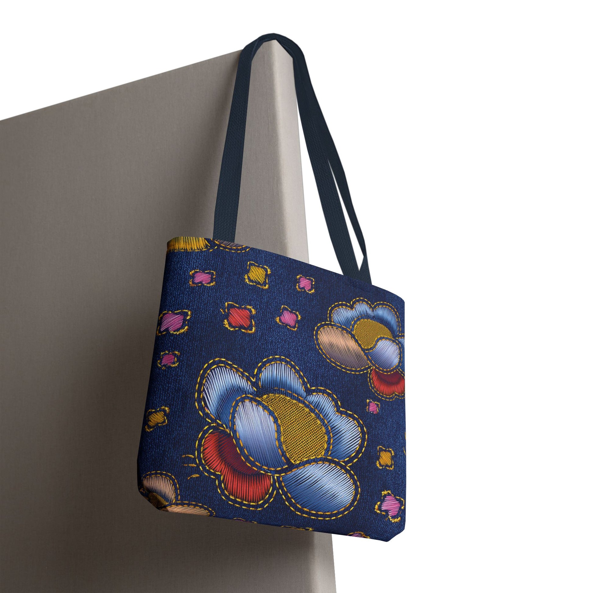 Denim Print Canvas Tote Bag – Elegant Poly Shoulder Bag - Enhance everyday functionality with timeless style in our Denim Print Canvas Tote Bag. Designed for versatility, this custom-printed tote is available in three convenient sizes and offers multiple handle color options to perfectly complement your look. Crafted from premium spun polyester, it delivers exceptional durability with double-stitched seams, sturdy cotton webbing straps, and a non-woven laminate interior.