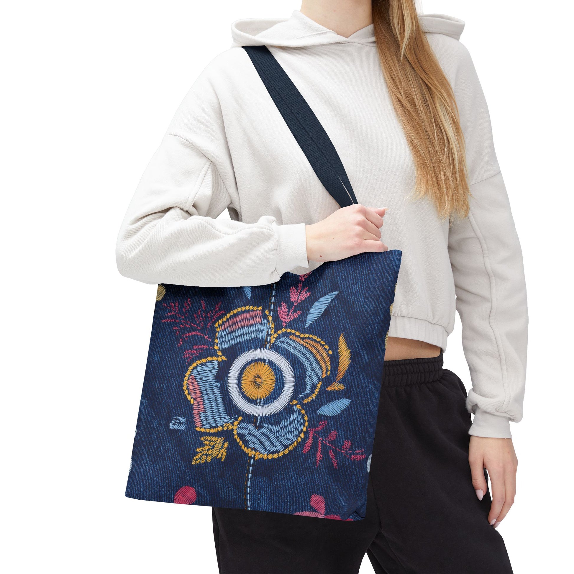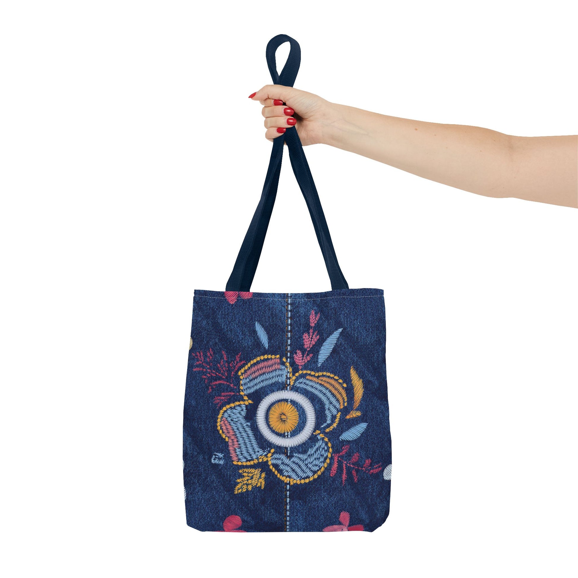 Denim Print Canvas Tote Bag – Elegant Poly Shoulder Bag - Enhance everyday functionality with timeless style in our Denim Print Canvas Tote Bag. Designed for versatility, this custom-printed tote is available in three convenient sizes and offers multiple handle color options to perfectly complement your look. Crafted from premium spun polyester, it delivers exceptional durability with double-stitched seams, sturdy cotton webbing straps, and a non-woven laminate interior.