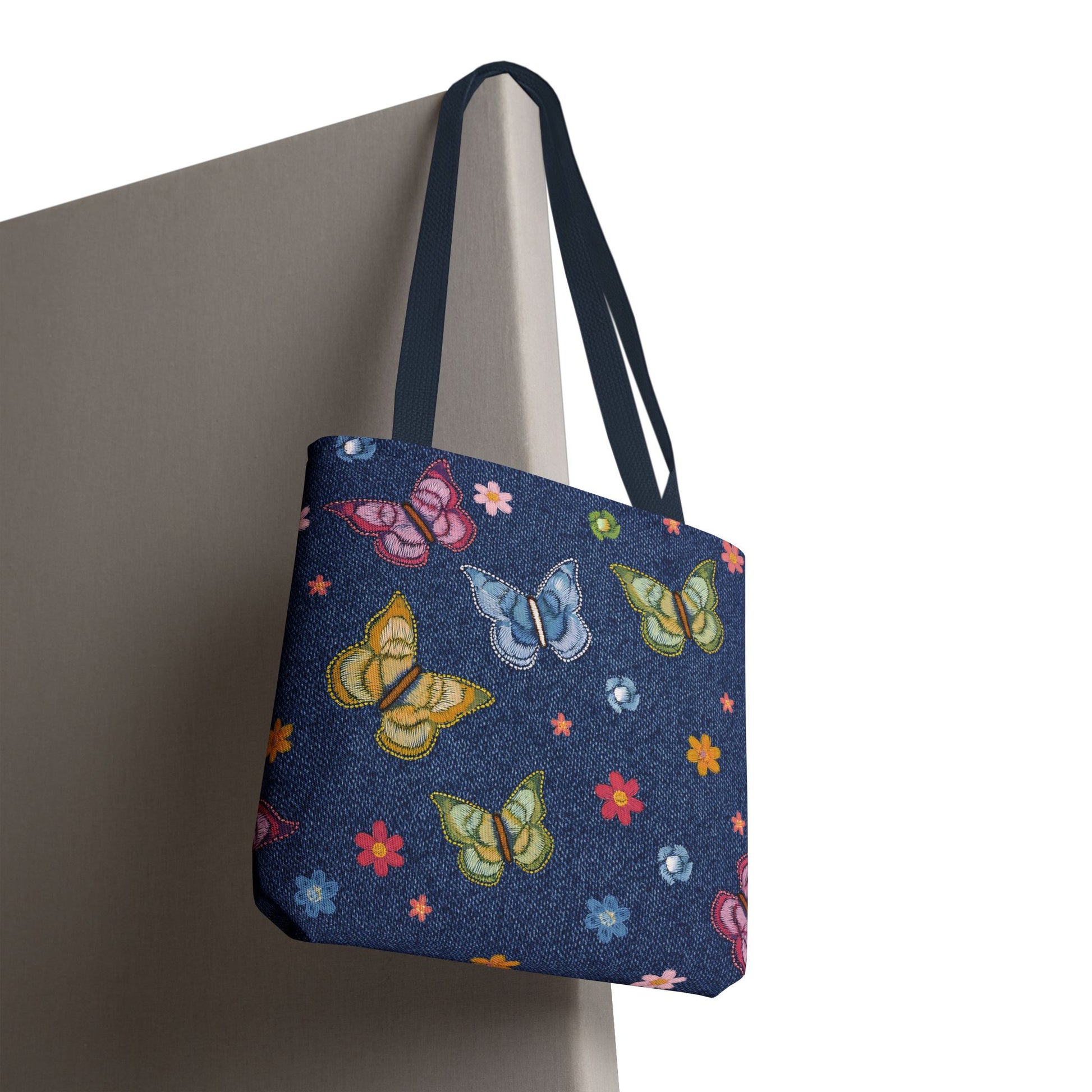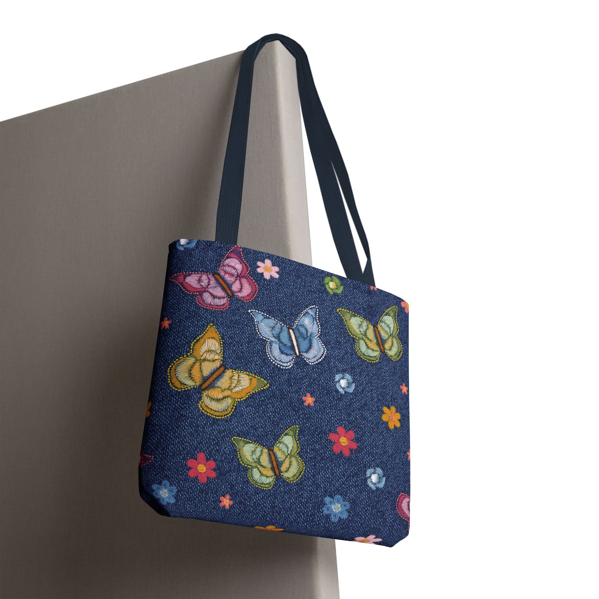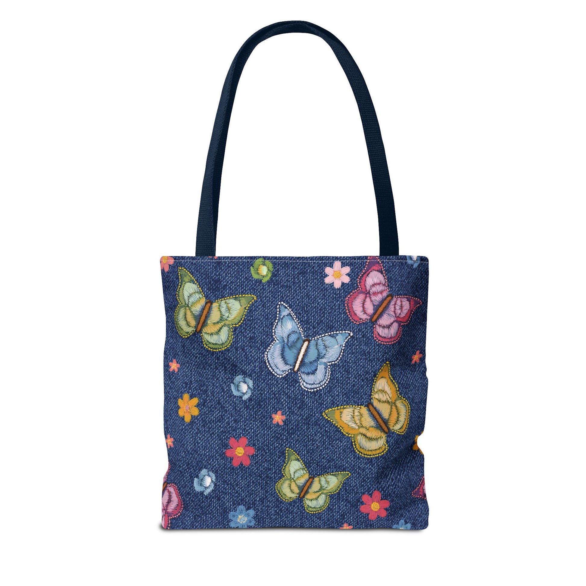 Denim Print Canvas Tote Bag – Elegant Poly Shoulder Bag - Enhance everyday functionality with timeless style in our Denim Print Canvas Tote Bag. Designed for versatility, this custom-printed tote is available in three convenient sizes and offers multiple handle color options to perfectly complement your look. Crafted from premium spun polyester, it delivers exceptional durability with double-stitched seams, sturdy cotton webbing straps, and a non-woven laminate interior.