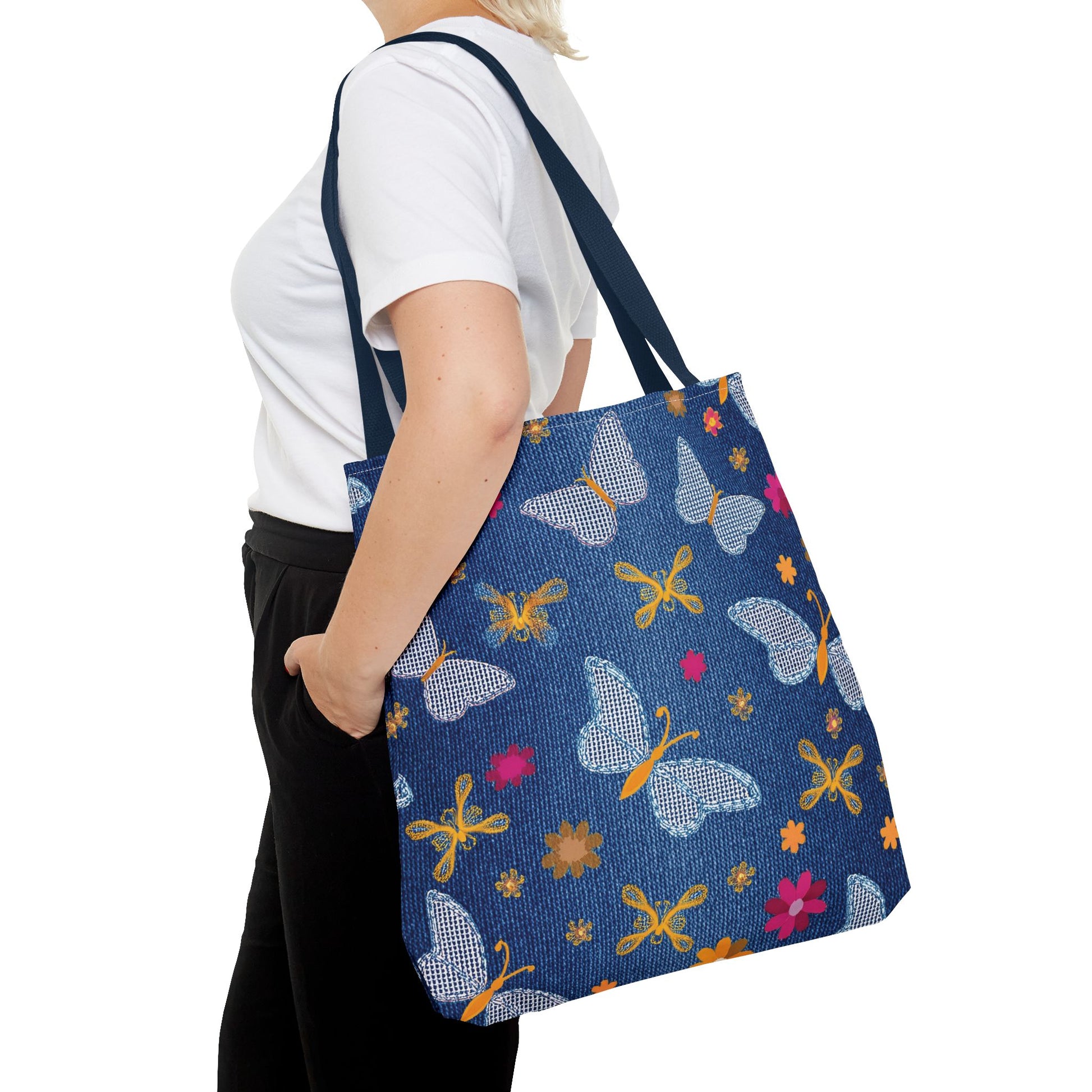 Denim Print Canvas Tote Bag – Elegant Poly Shoulder Bag - Enhance everyday functionality with timeless style in our Denim Print Canvas Tote Bag. Designed for versatility, this custom-printed tote is available in three convenient sizes and offers multiple handle color options to perfectly complement your look. Crafted from premium spun polyester, it delivers exceptional durability with double-stitched seams, sturdy cotton webbing straps, and a non-woven laminate interior.