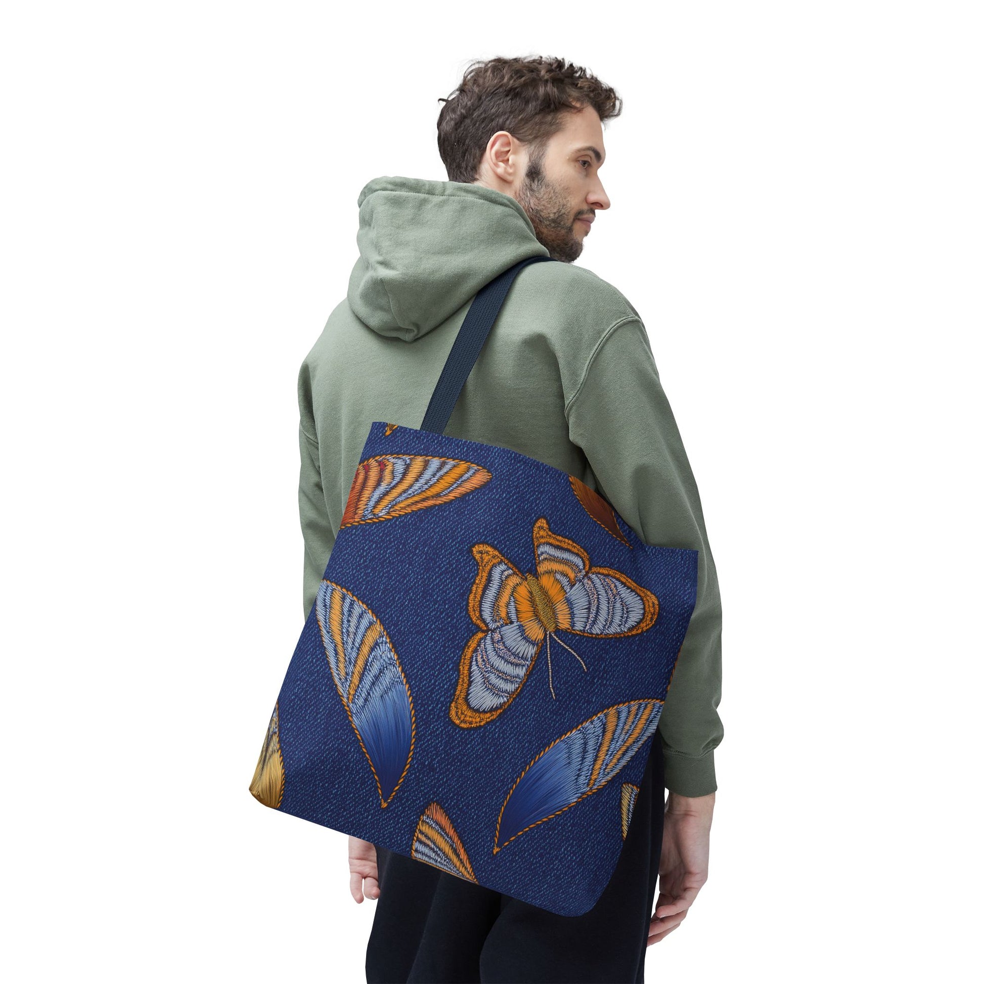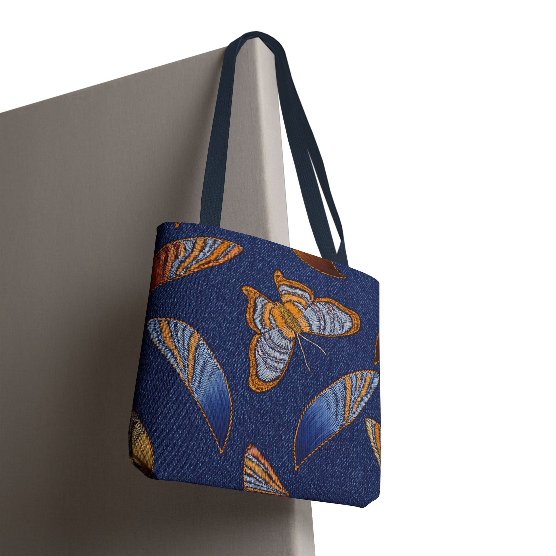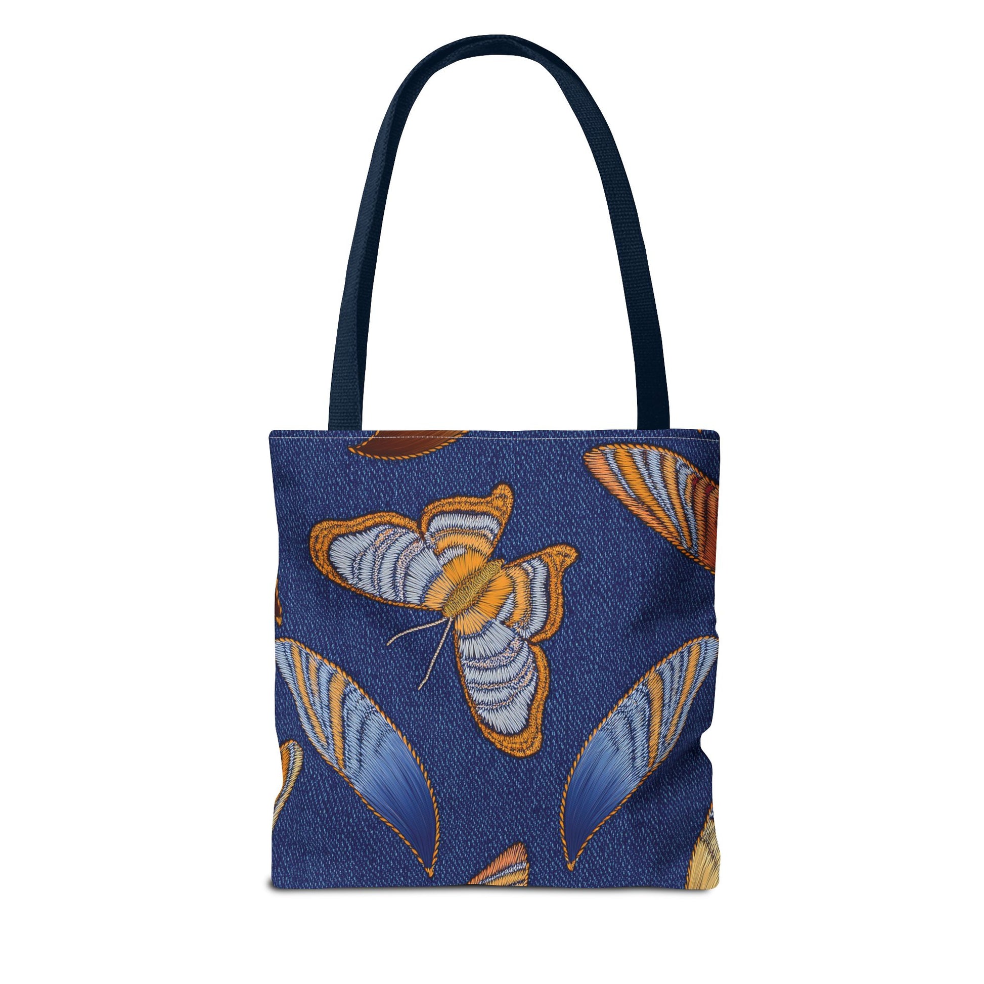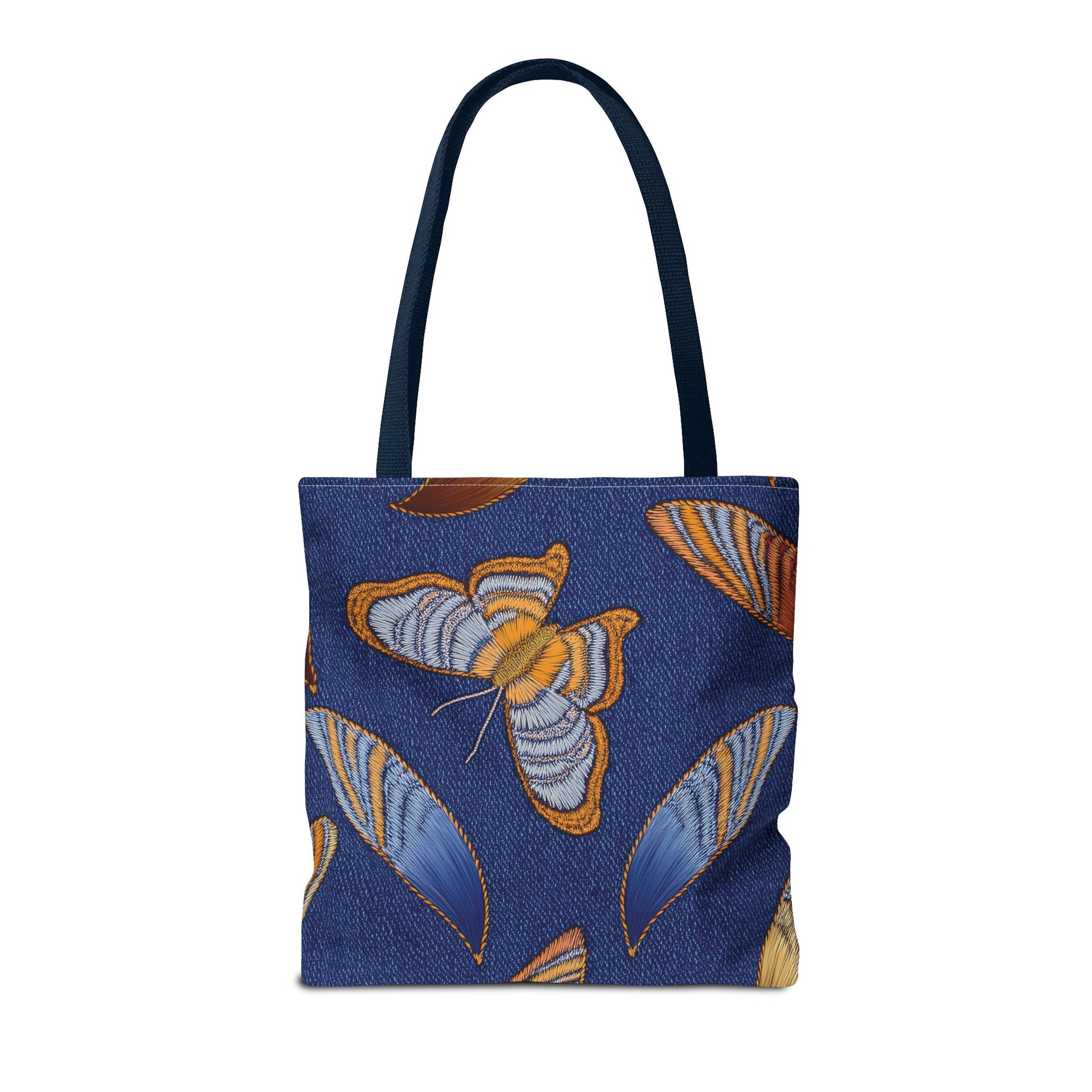 Denim Print Canvas Tote Bag – Elegant Poly Shoulder Bag - Enhance everyday functionality with timeless style in our Denim Print Canvas Tote Bag. Designed for versatility, this custom-printed tote is available in three convenient sizes and offers multiple handle color options to perfectly complement your look. Crafted from premium spun polyester, it delivers exceptional durability with double-stitched seams, sturdy cotton webbing straps, and a non-woven laminate interior.