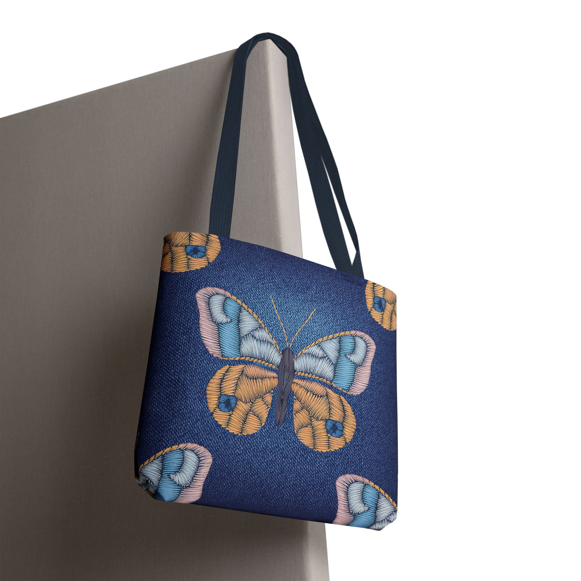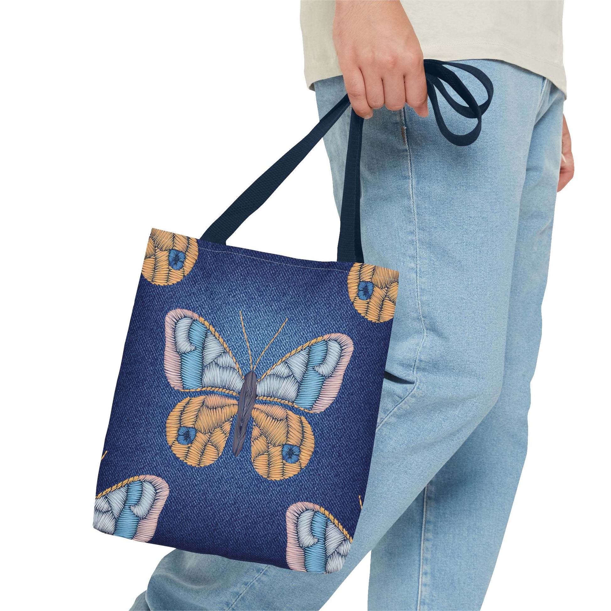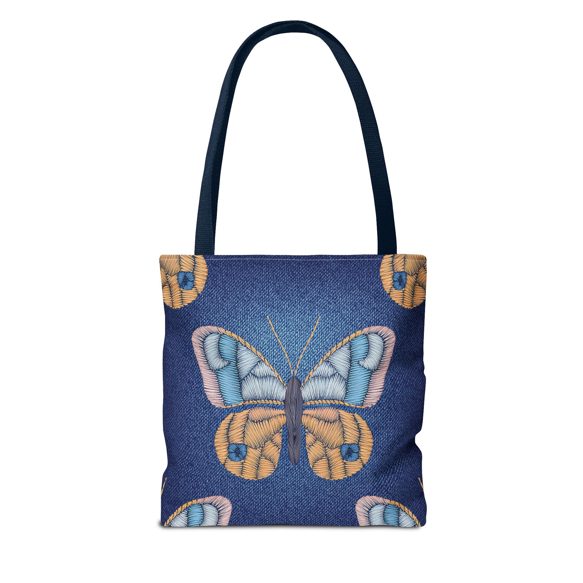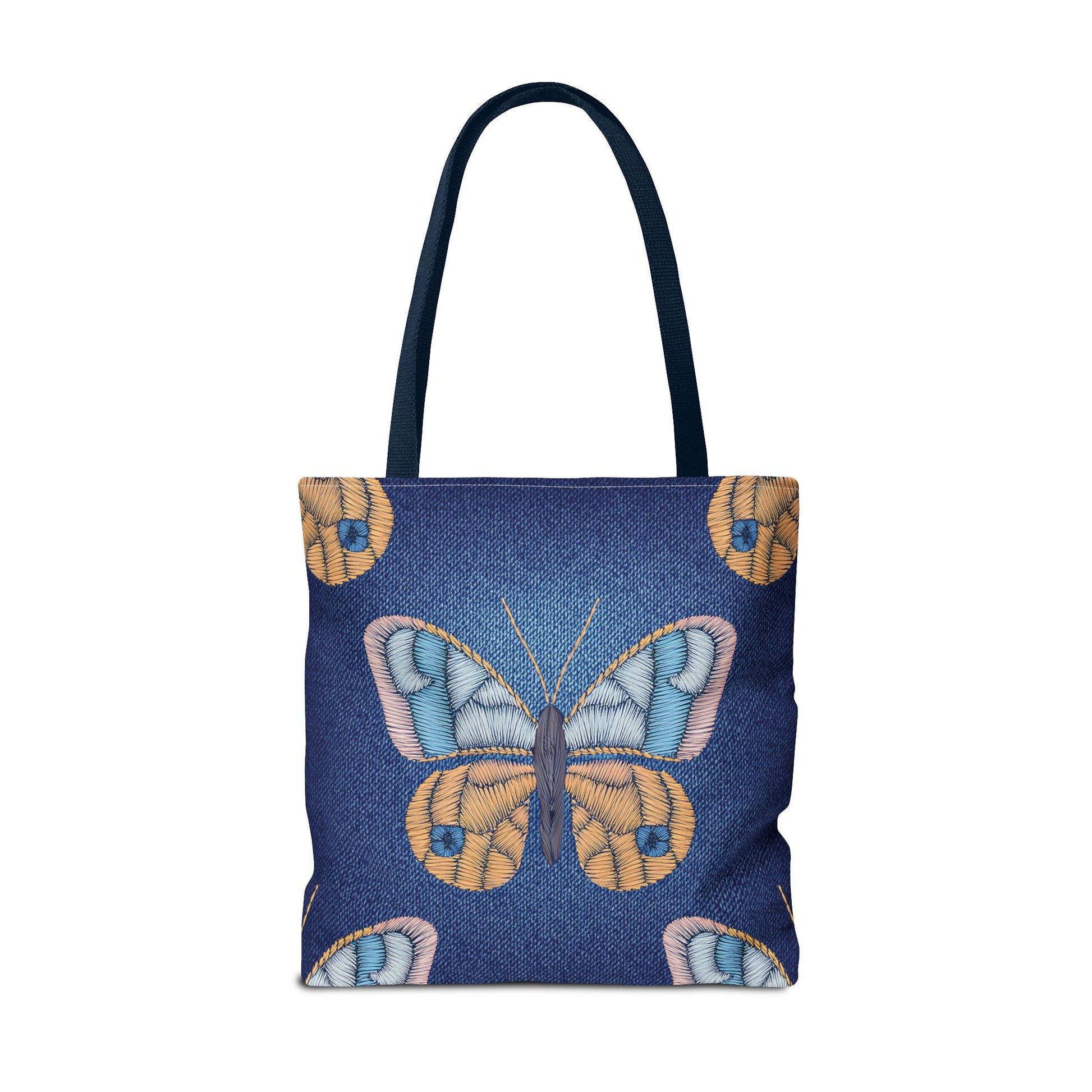 Denim Print Canvas Tote Bag – Elegant Poly Shoulder Bag - Enhance everyday functionality with timeless style in our Denim Print Canvas Tote Bag. Designed for versatility, this custom-printed tote is available in three convenient sizes and offers multiple handle color options to perfectly complement your look. Crafted from premium spun polyester, it delivers exceptional durability with double-stitched seams, sturdy cotton webbing straps, and a non-woven laminate interior.