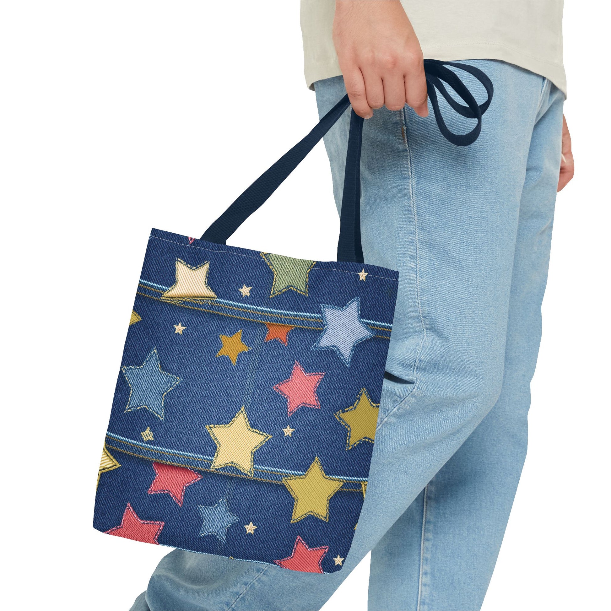 Denim Print Canvas Tote Bag – Elegant Poly Shoulder Bag - Enhance everyday functionality with timeless style in our Denim Print Canvas Tote Bag. Designed for versatility, this custom-printed tote is available in three convenient sizes and offers multiple handle color options to perfectly complement your look. Crafted from premium spun polyester, it delivers exceptional durability with double-stitched seams, sturdy cotton webbing straps, and a non-woven laminate interior.