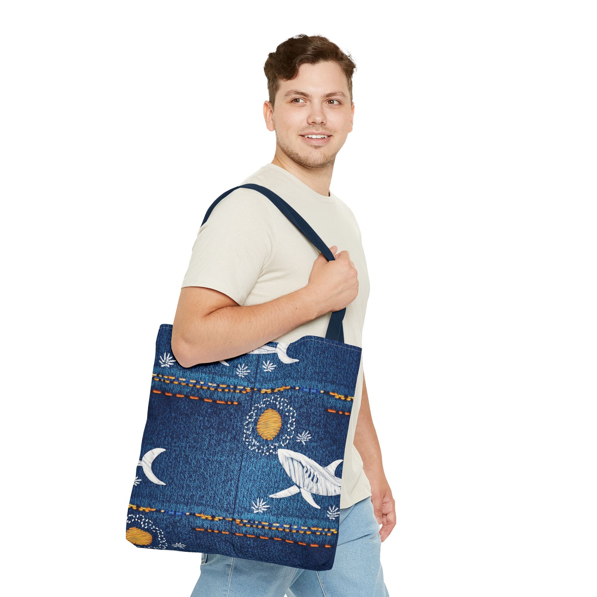 Denim Print Canvas Tote Bag – Elegant Poly Shoulder Bag - Enhance everyday functionality with timeless style in our Denim Print Canvas Tote Bag. Designed for versatility, this custom-printed tote is available in three convenient sizes and offers multiple handle color options to perfectly complement your look. Crafted from premium spun polyester, it delivers exceptional durability with double-stitched seams, sturdy cotton webbing straps, and a non-woven laminate interior.