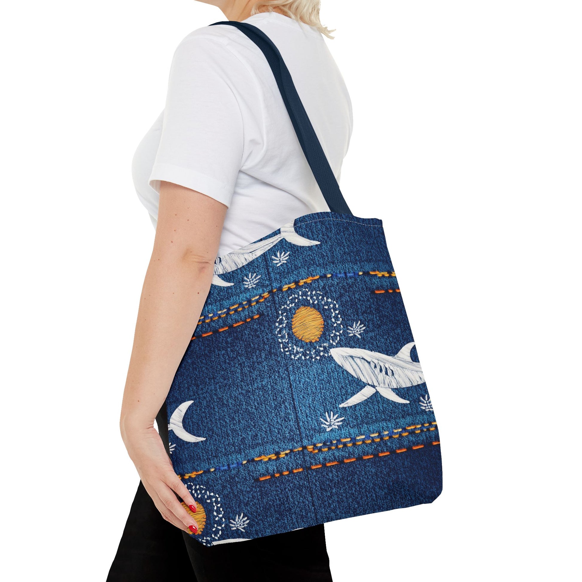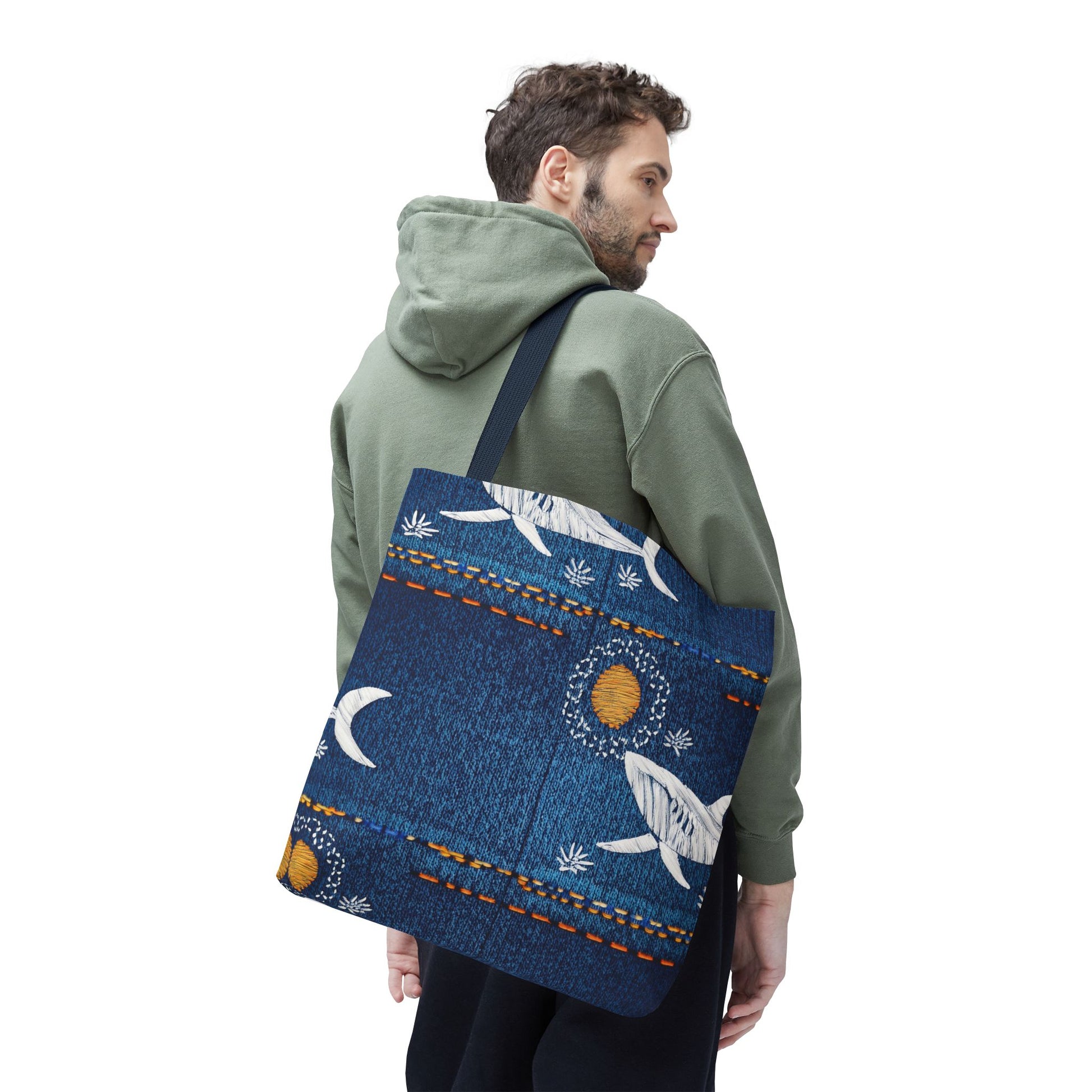 Denim Print Canvas Bag, Tote Bag in Denim Print