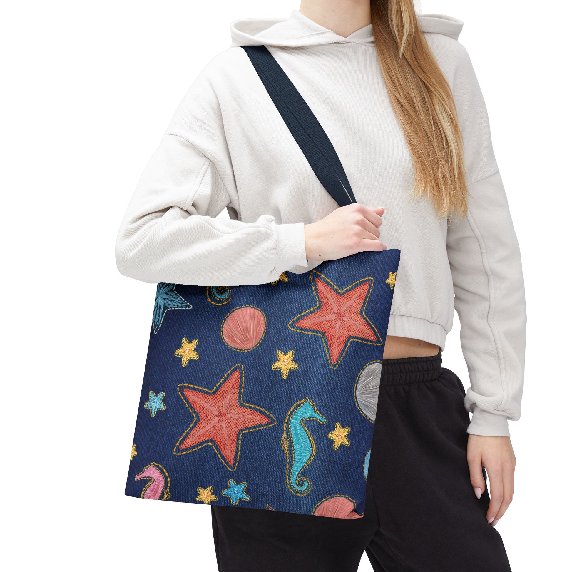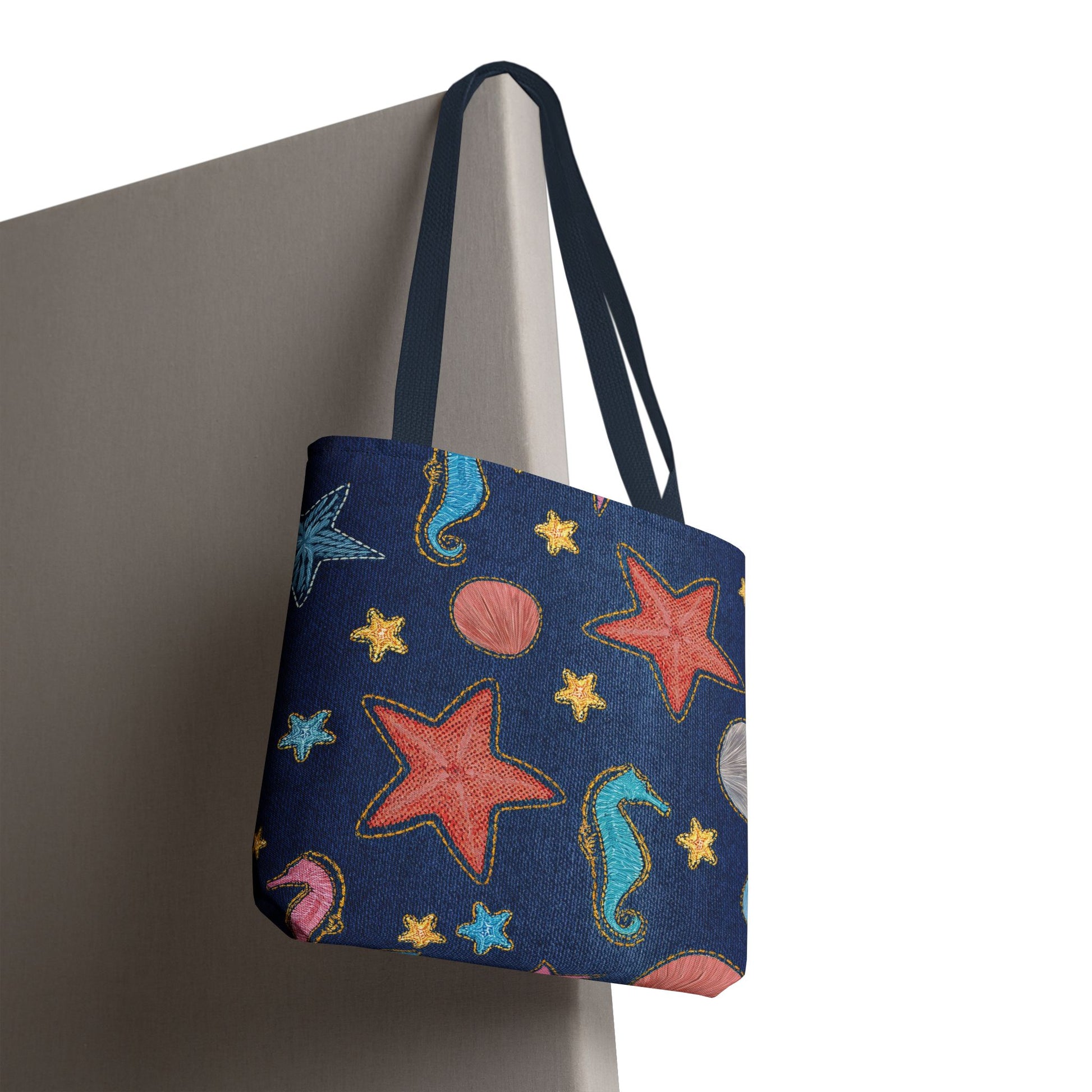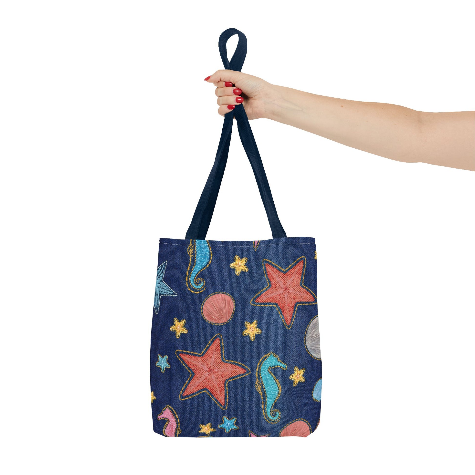 Denim Print Canvas Tote Bag – Elegant Poly Shoulder Bag - Enhance everyday functionality with timeless style in our Denim Print Canvas Tote Bag. Designed for versatility, this custom-printed tote is available in three convenient sizes and offers multiple handle color options to perfectly complement your look. Crafted from premium spun polyester, it delivers exceptional durability with double-stitched seams, sturdy cotton webbing straps, and a non-woven laminate interior.