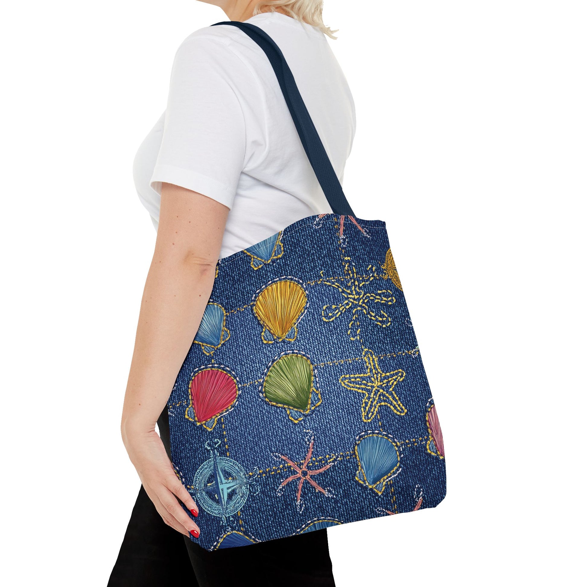 Denim Print Canvas Tote Bag – Elegant Poly Shoulder Bag - Enhance everyday functionality with timeless style in our Denim Print Canvas Tote Bag. Designed for versatility, this custom-printed tote is available in three convenient sizes and offers multiple handle color options to perfectly complement your look. Crafted from premium spun polyester, it delivers exceptional durability with double-stitched seams, sturdy cotton webbing straps, and a non-woven laminate interior.