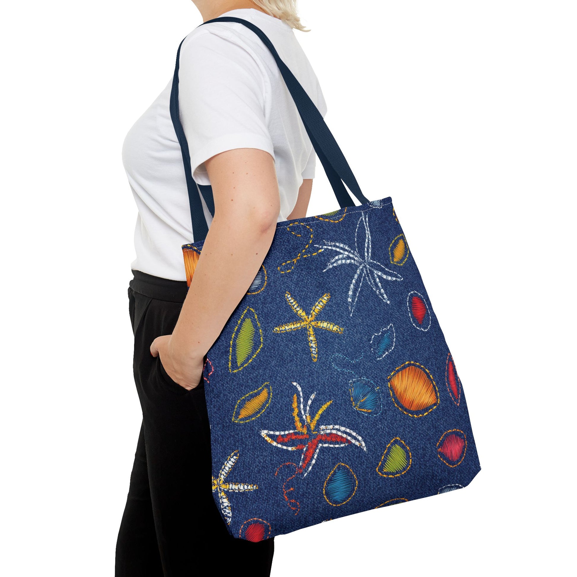 Denim Print Canvas Tote Bag – Elegant Poly Shoulder Bag - Enhance everyday functionality with timeless style in our Denim Print Canvas Tote Bag. Designed for versatility, this custom-printed tote is available in three convenient sizes and offers multiple handle color options to perfectly complement your look. Crafted from premium spun polyester, it delivers exceptional durability with double-stitched seams, sturdy cotton webbing straps, and a non-woven laminate interior.