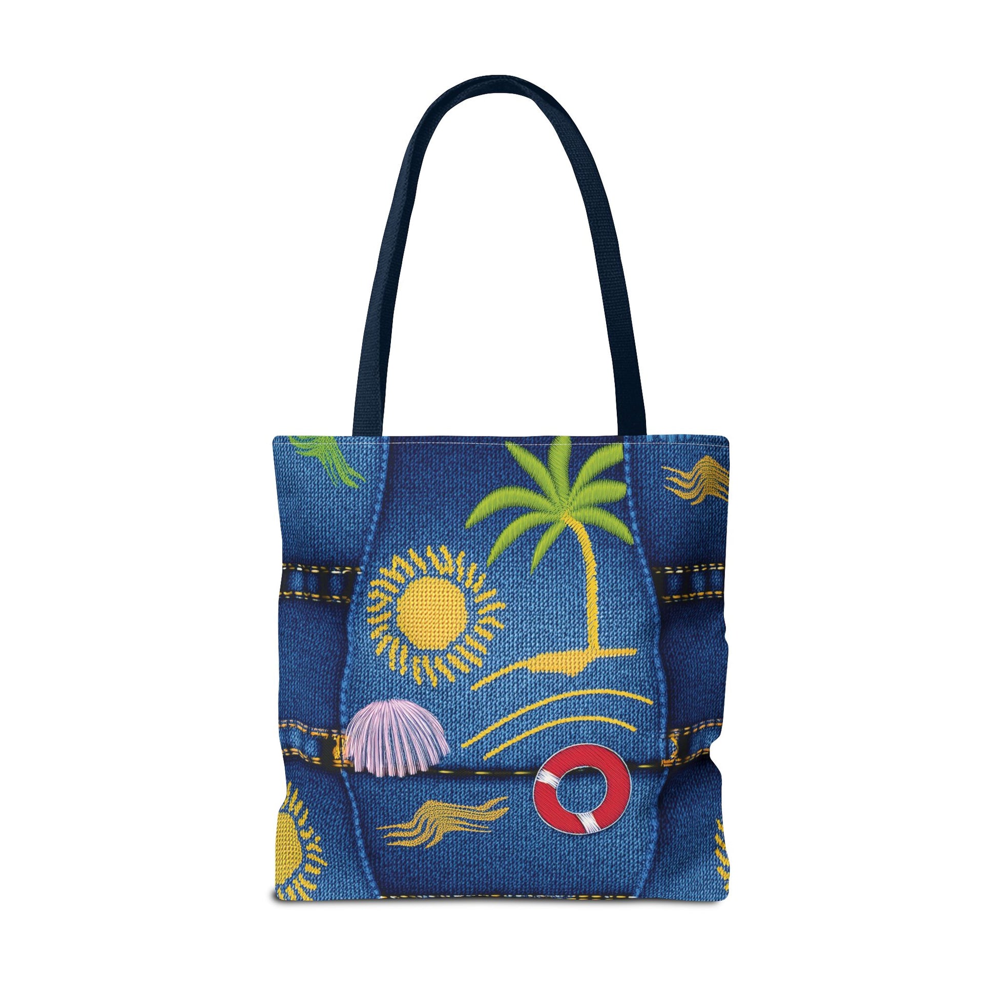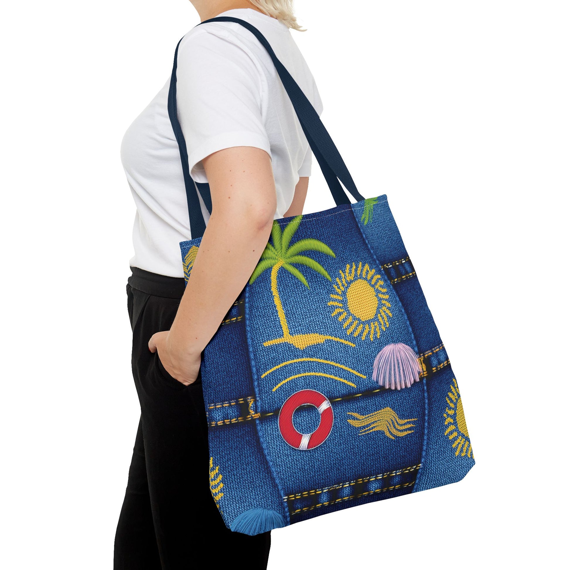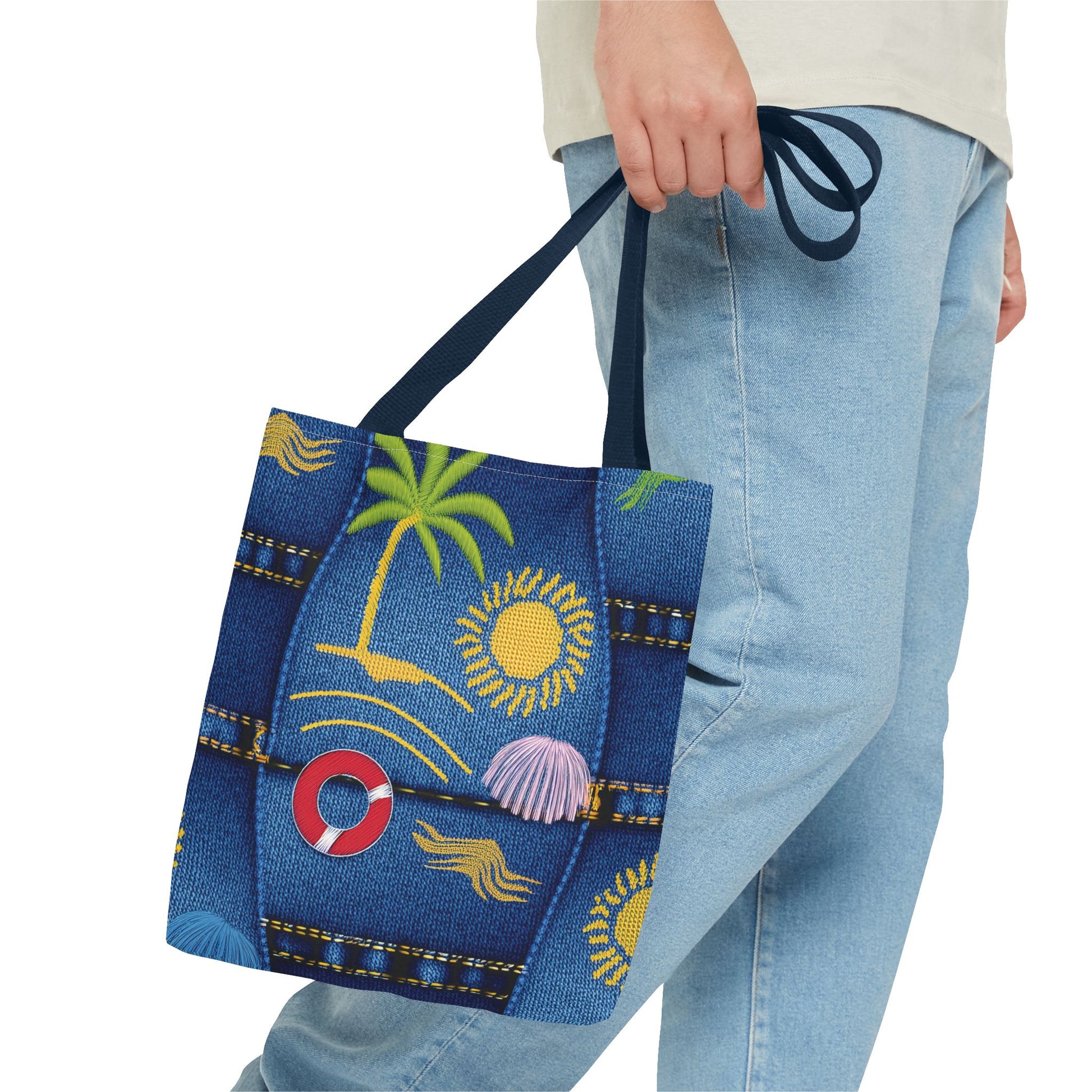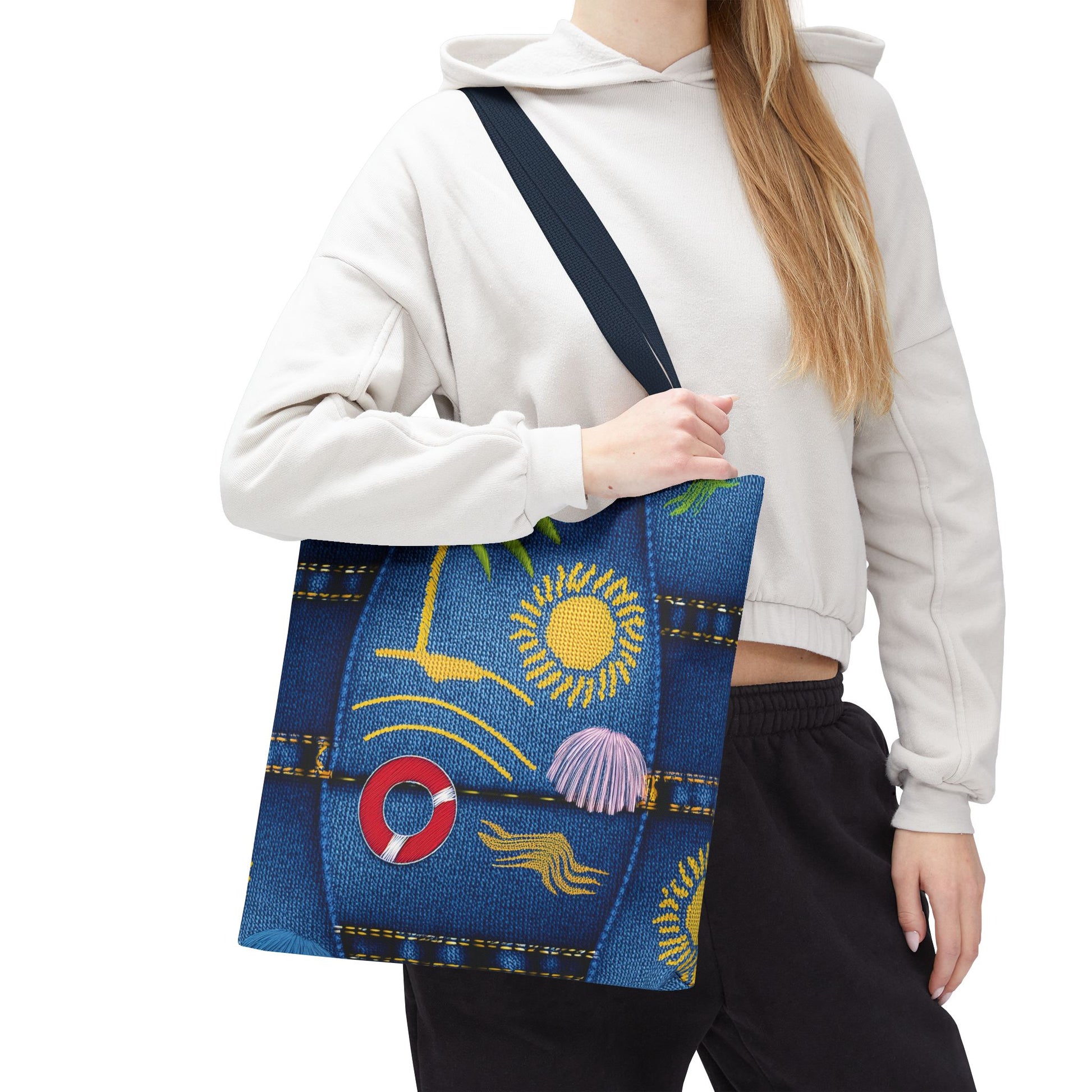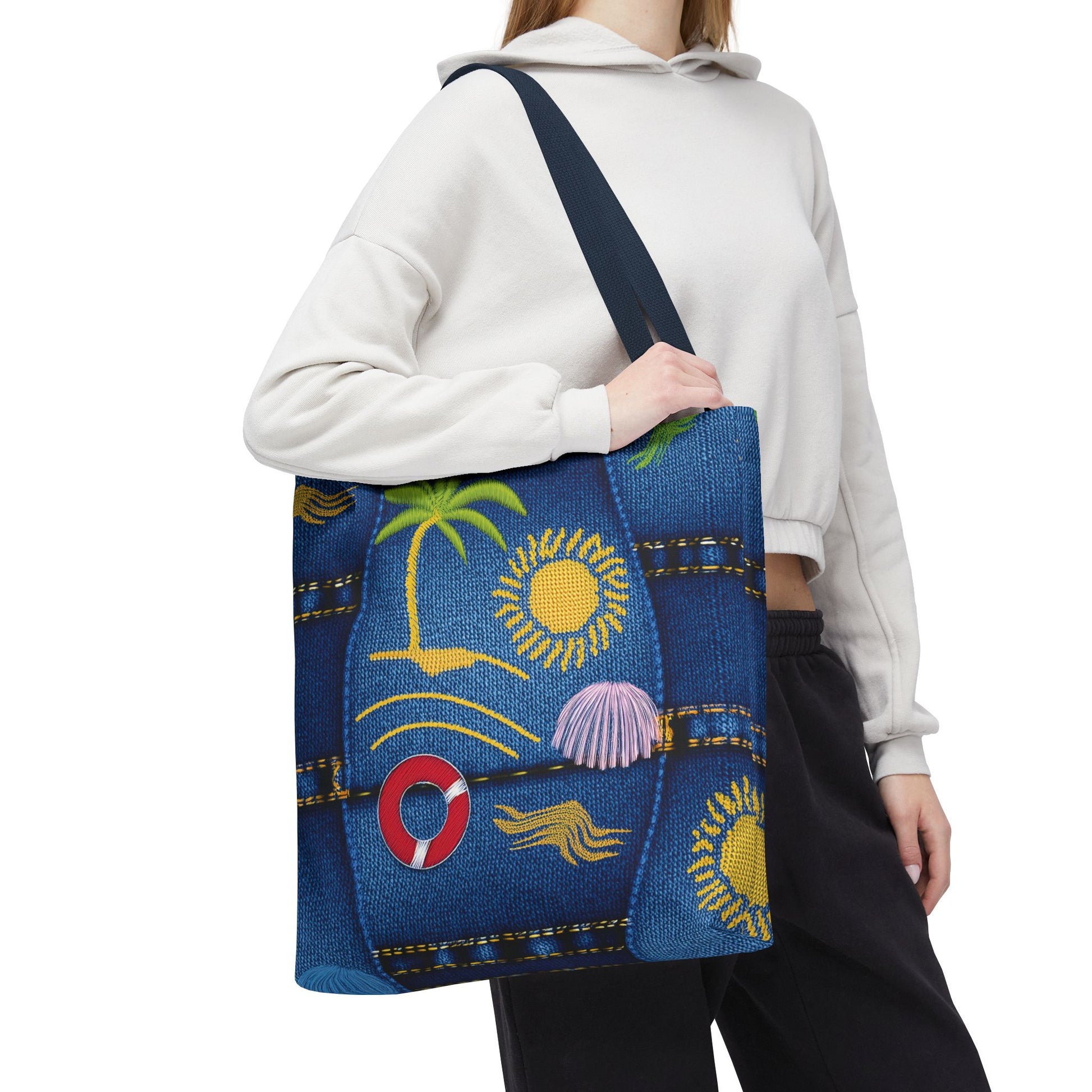Denim Print Canvas Tote Bag – Elegant Poly Shoulder Bag - Enhance everyday functionality with timeless style in our Denim Print Canvas Tote Bag. Designed for versatility, this custom-printed tote is available in three convenient sizes and offers multiple handle color options to perfectly complement your look. Crafted from premium spun polyester, it delivers exceptional durability with double-stitched seams, sturdy cotton webbing straps, and a non-woven laminate interior.