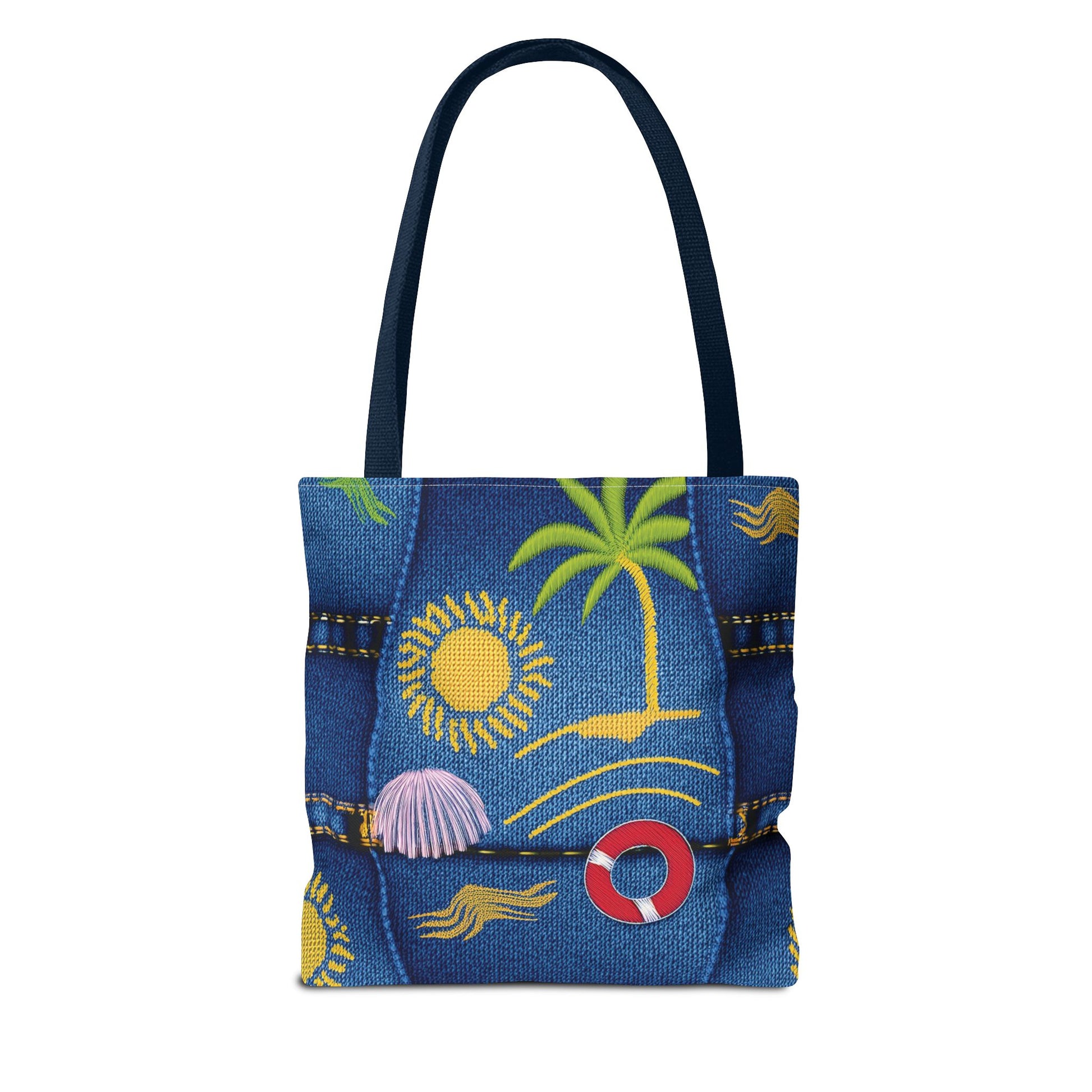 Denim Print Canvas Bag, Tote Bag in Denim Print