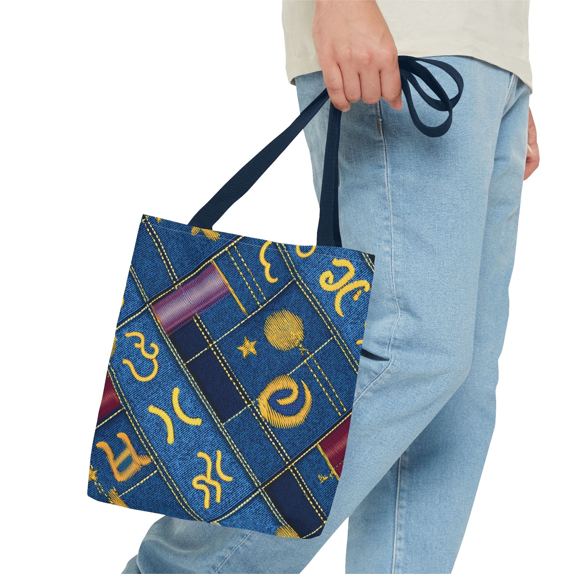 Denim Print Canvas Tote Bag – Elegant Poly Shoulder Bag - Enhance everyday functionality with timeless style in our Denim Print Canvas Tote Bag. Designed for versatility, this custom-printed tote is available in three convenient sizes and offers multiple handle color options to perfectly complement your look. Crafted from premium spun polyester, it delivers exceptional durability with double-stitched seams, sturdy cotton webbing straps, and a non-woven laminate interior.