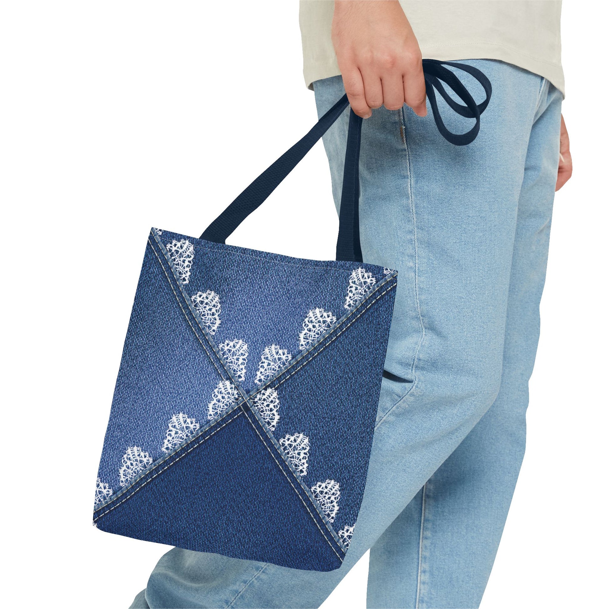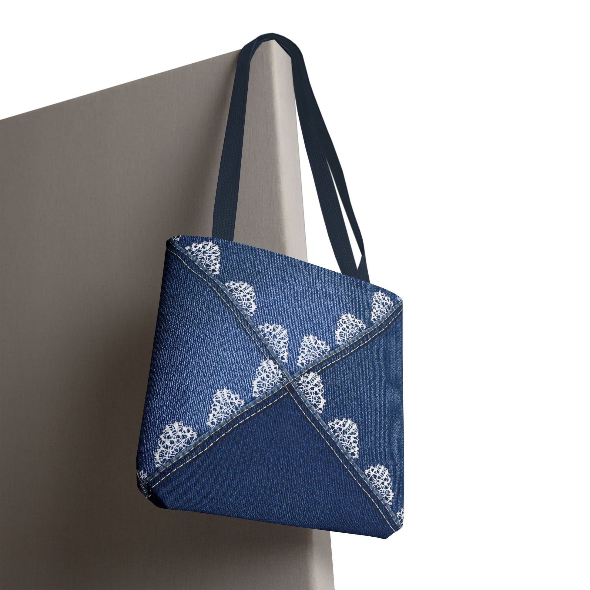 Denim Print Canvas Bag, Tote Bag in Denim Print