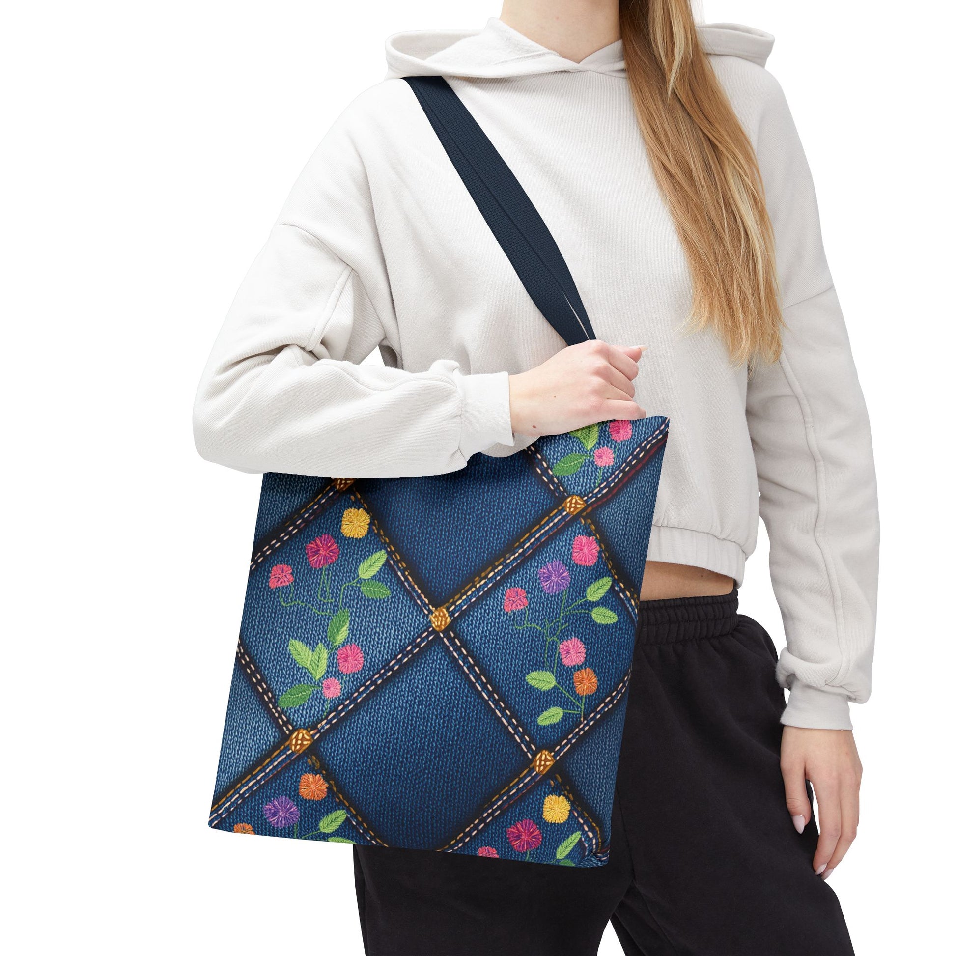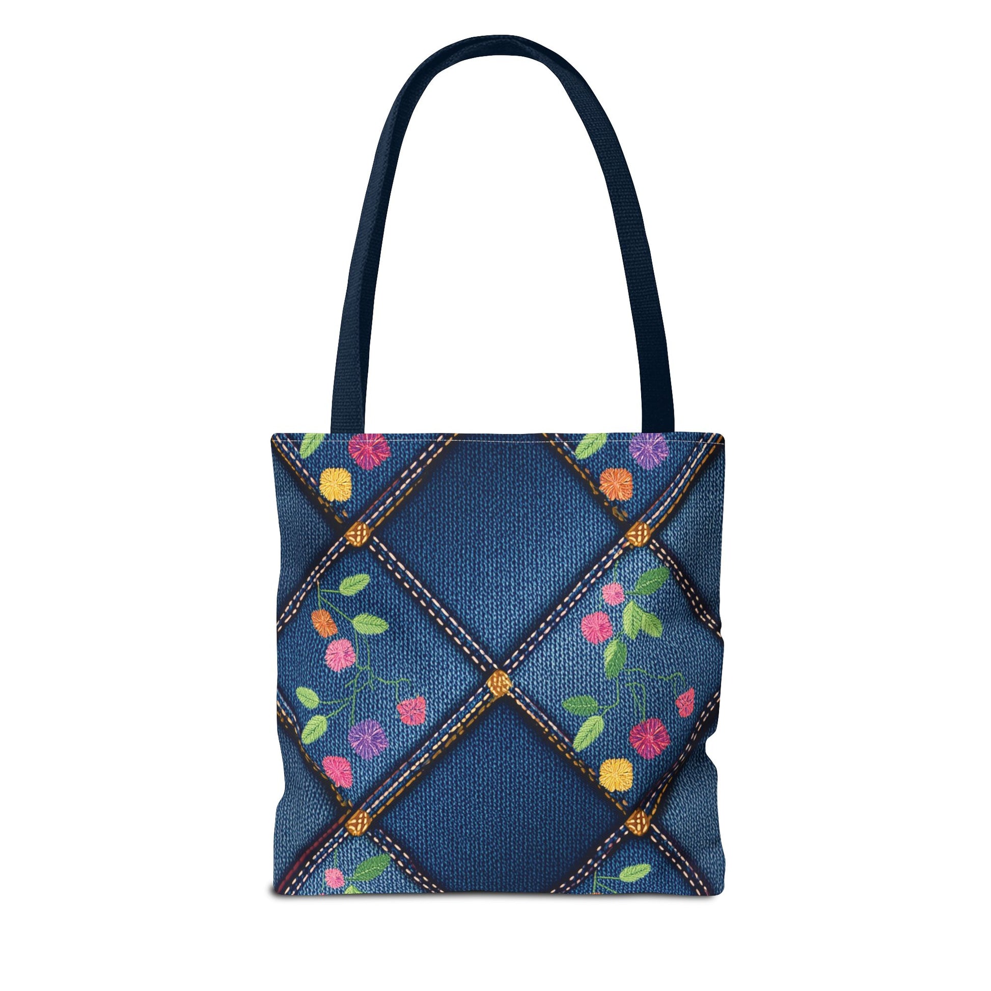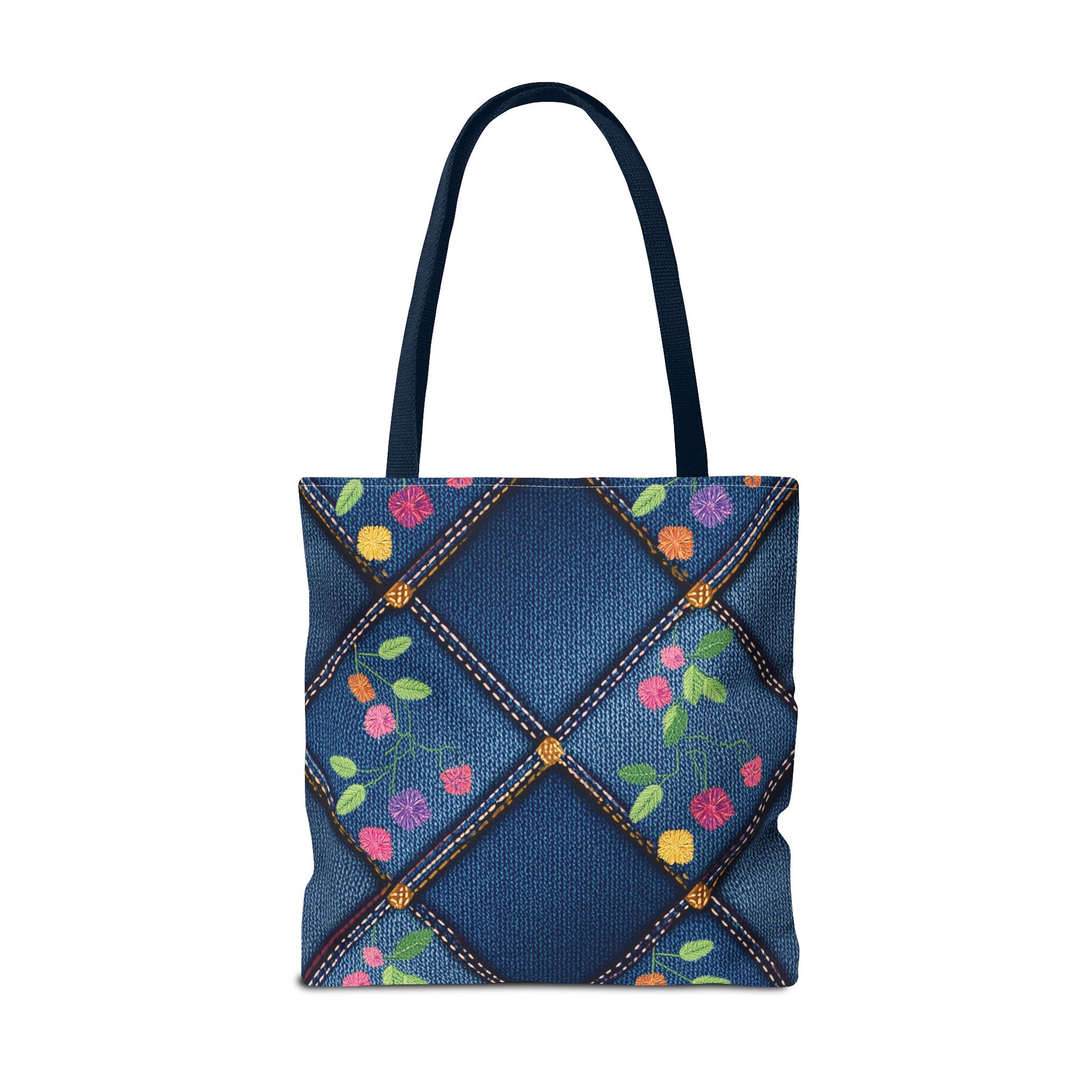 Denim Print Canvas Tote Bag – Elegant Poly Shoulder Bag - Enhance everyday functionality with timeless style in our Denim Print Canvas Tote Bag. Designed for versatility, this custom-printed tote is available in three convenient sizes and offers multiple handle color options to perfectly complement your look. Crafted from premium spun polyester, it delivers exceptional durability with double-stitched seams, sturdy cotton webbing straps, and a non-woven laminate interior.